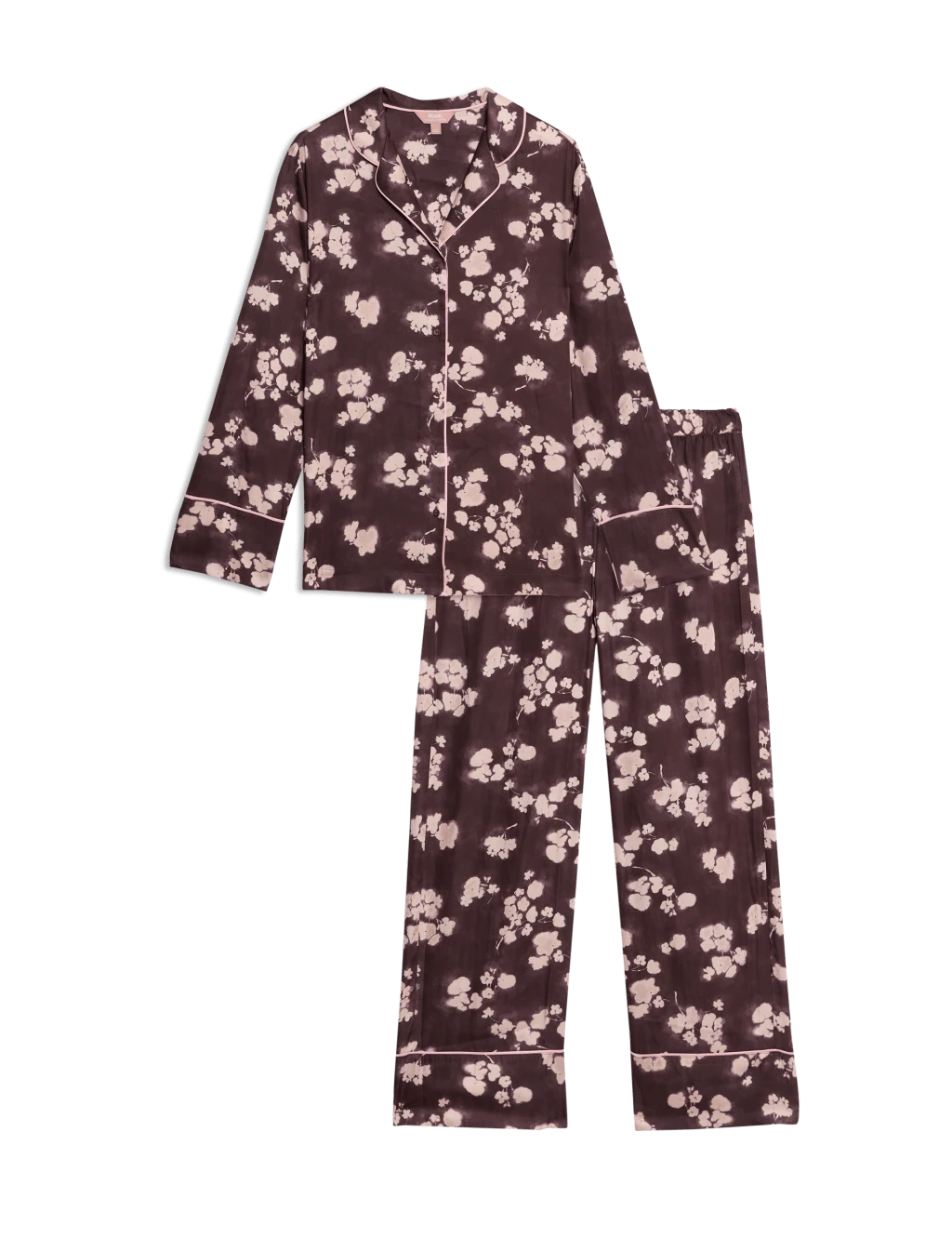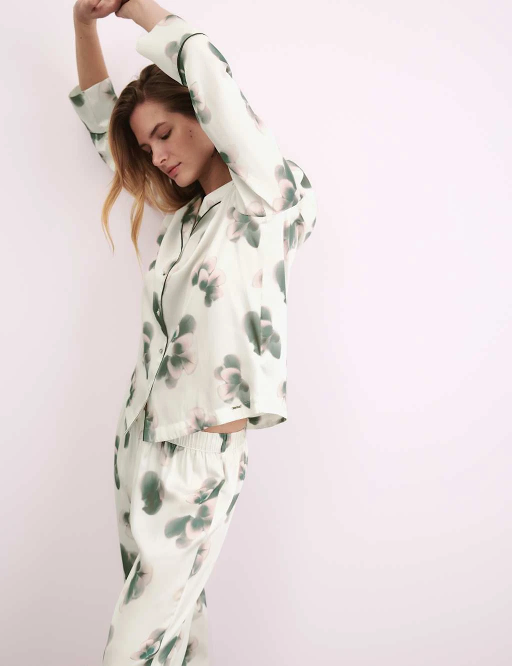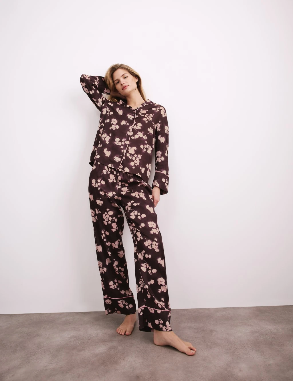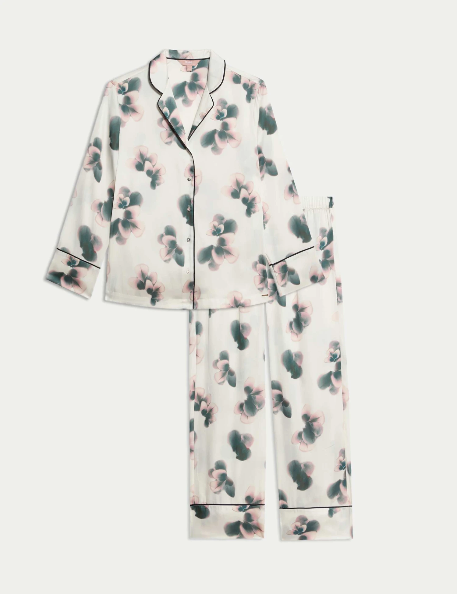 Feminine florals and luxurious satin combine to create these beautiful pyjamas by Rosie Exclusively for M&S. The two-piece set is cut to an easy regular fit. It comprises a long-sleeved, button-through top with a smart revere collar and matching bottoms with a comfy elasticated waist. Both pieces are made with Cling Resist™ technology for an anti-static finish. Rosie Sleepwear: vintage-inspired pieces featuring eye-catching prints and elegant finishes.