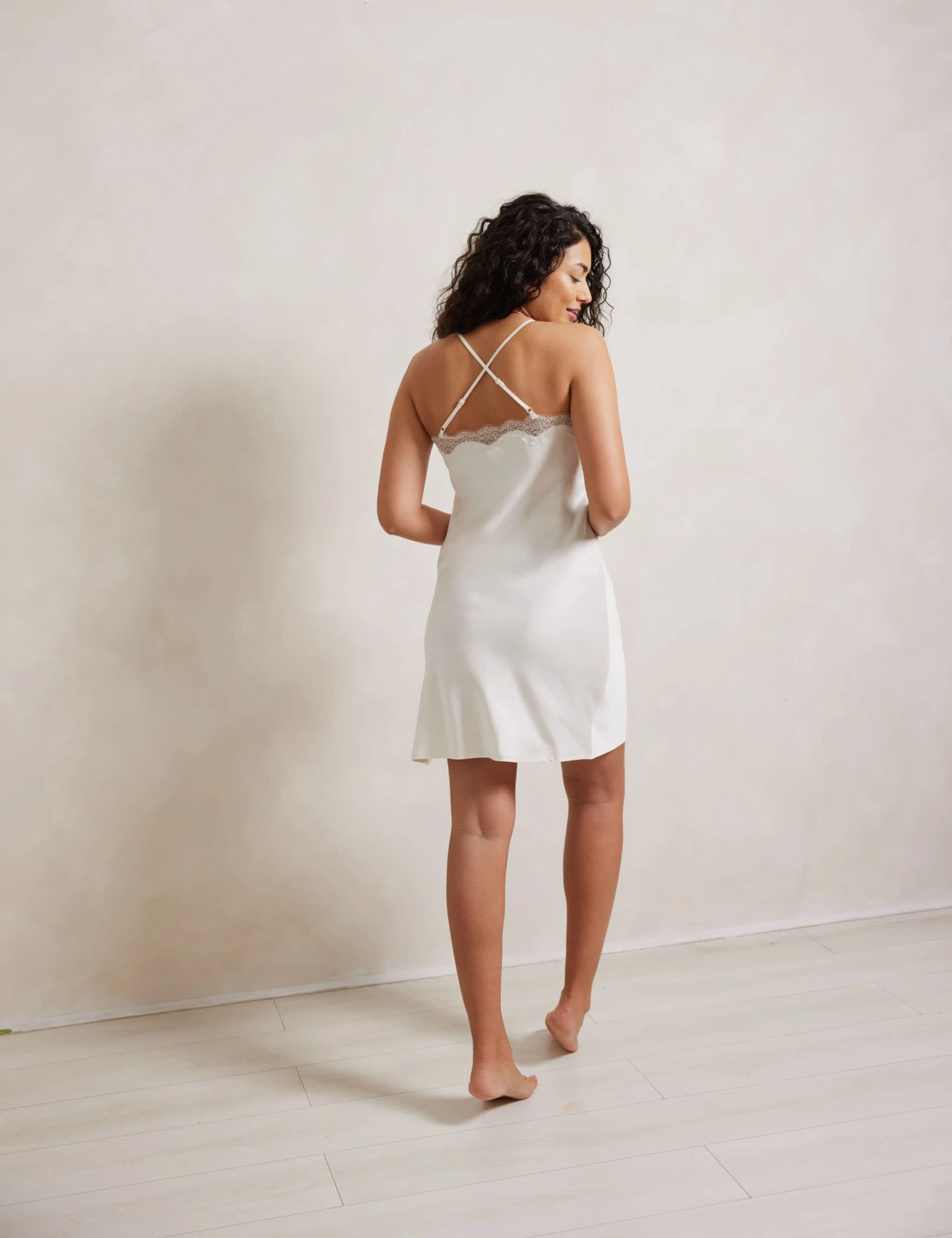 Bring a romantic feel to your nightwear with this sultry chemise from Chelsea Peers. It’s made in a regular fit. The lace trims on the v-neckline and hem add to the luxurious look. Slim spaghetti straps offer a dainty touch and can be adjusted for your perfect fit.