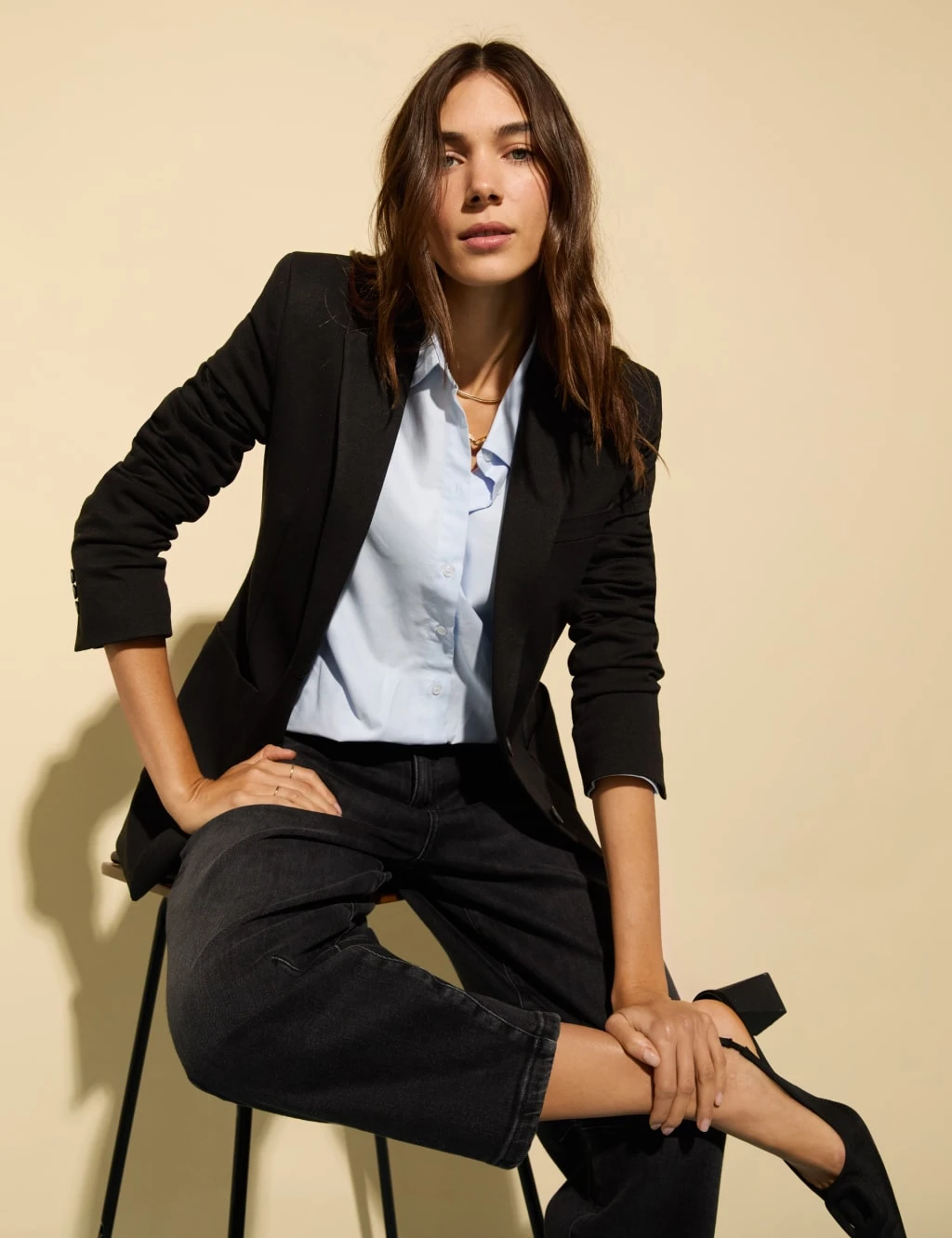 This sleek, longline blazer from Baukjen is a smart addition to your capsule wardrobe. It’s cut in a regular fit in a contemporary single breasted silhouette with crisp notch lapels and three-button cuffs. Patch pockets at the hips provide useful storage, while a breast pocket adds a neat finishing touch.