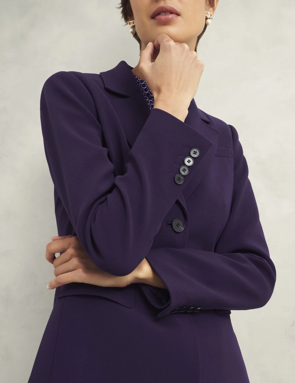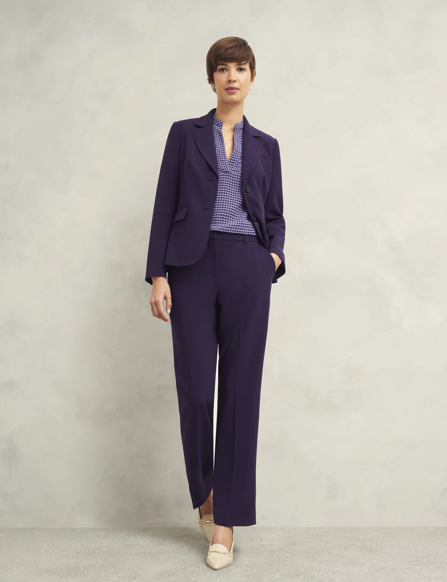 This single-breasted Hobbs blazer is an elegant classic. It’s made a regular fit, with a two-button fastening and a smart collar that has notch lapels. A welt chest pocket and two flap pockets at waist height complete this sleek piece. Matching items are available.