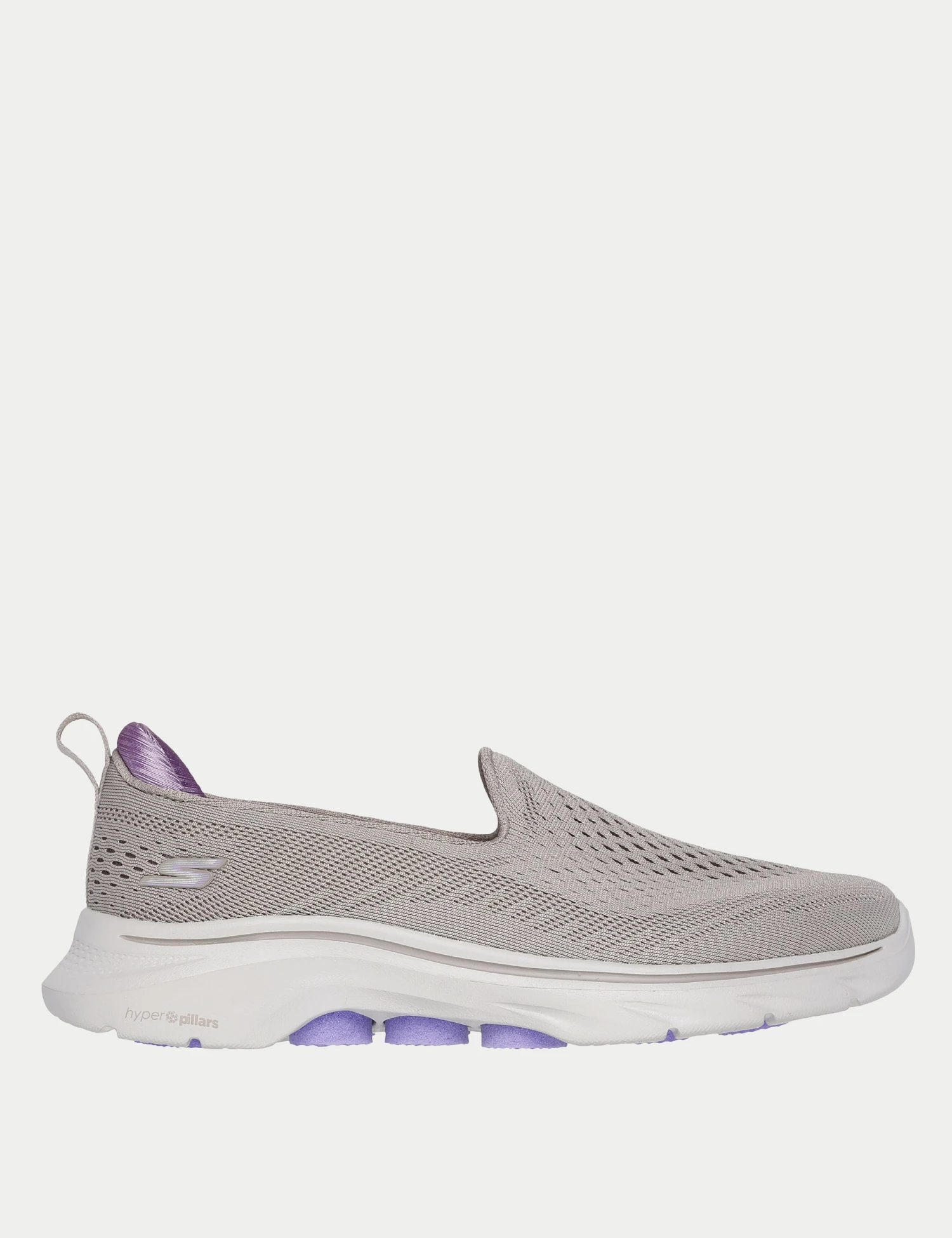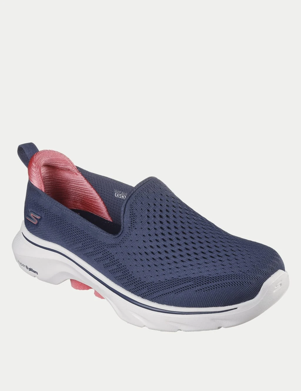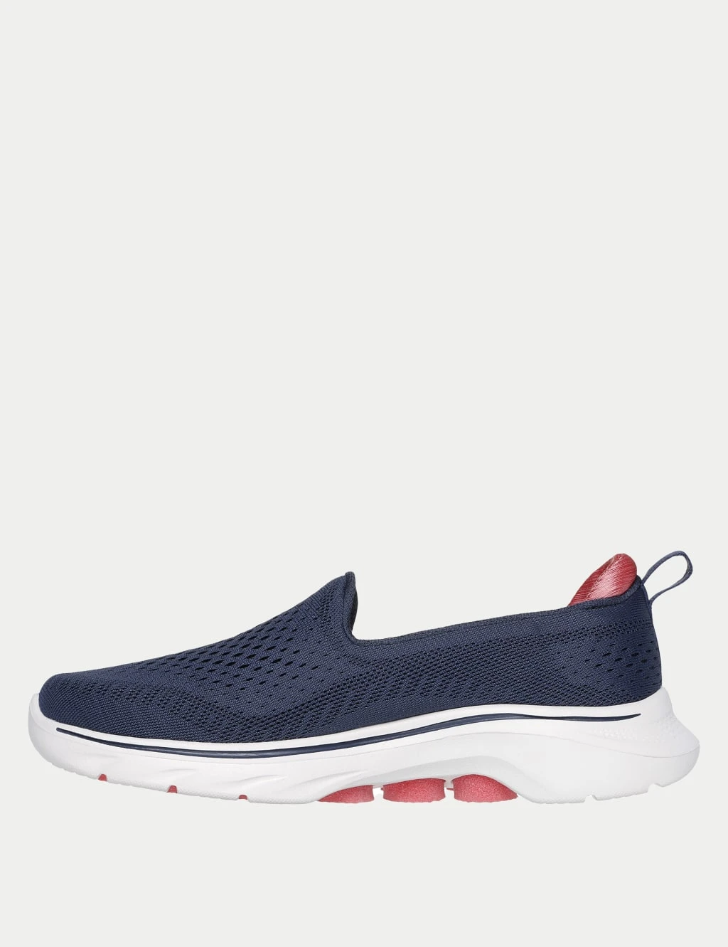 These Skechers trainers combine style and comfort with their sleek slip-on design. They’re made with a breathable mesh upper and have a padded collar to protect your ankle. The flat sole has a cushioned footbed for all-day comfort, while the textured outsole provides extra grip. A branded strap on the instep completes their sporty look.