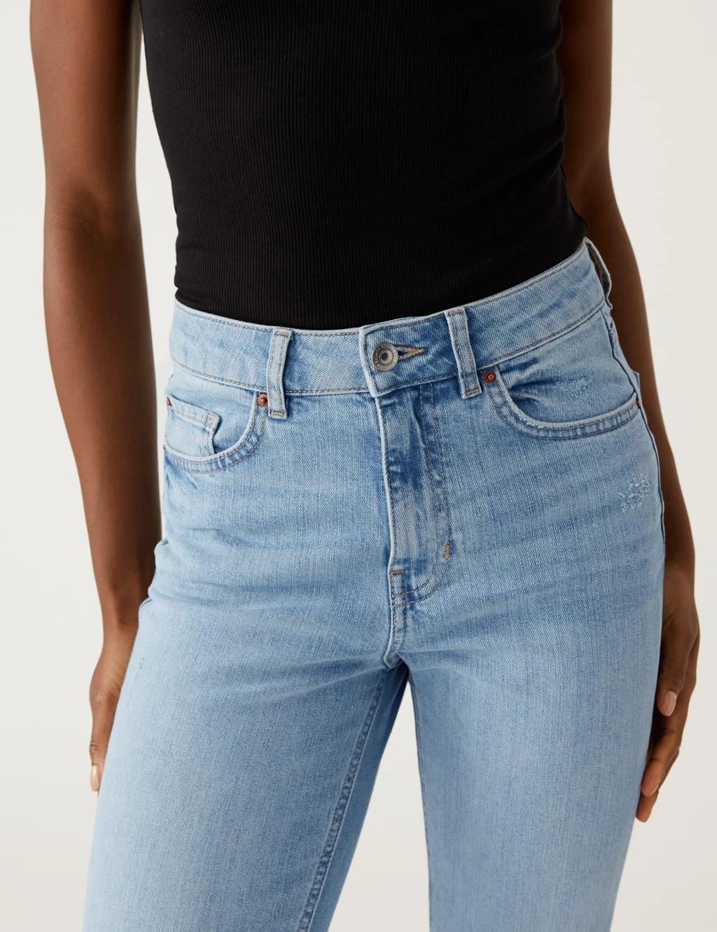 These authentic washed denim jeans are crafted from cotton-rich fabric, with added stretch to keep them in shape. They’re cut to a stylish slim fit, with a comfy mid-rise waist and a contemporary ankle-grazer length. Traditional features include five pockets, visible stitching and rivets. The jeans fasten with the classic button and zip fly.