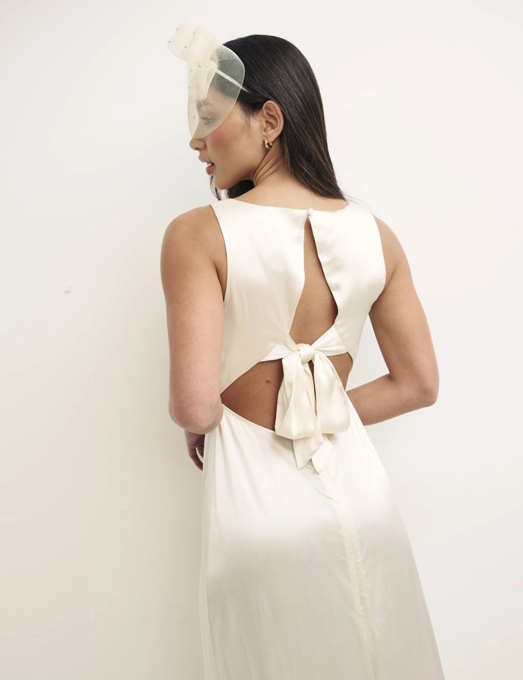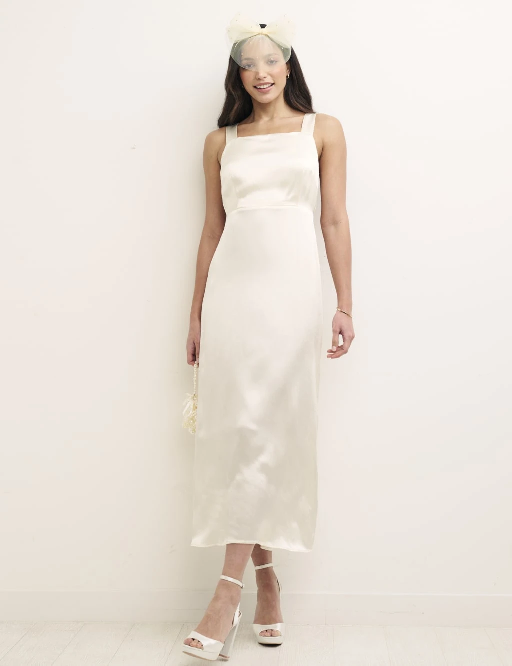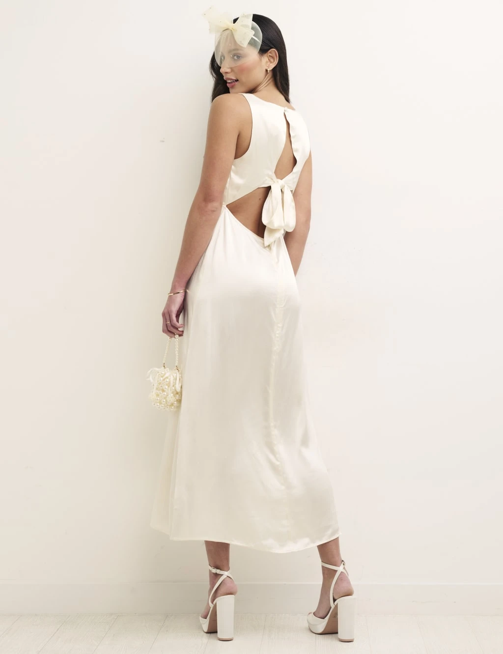 Make an impression at smart events with this slinky tea dress from Nobody’s Child. It’s made in a flattering slim fit with a waisted panel and falls to an easy midi length. This strappy style is complete with a button closure and a statement bow at the back. The square neck adds a modern finish.