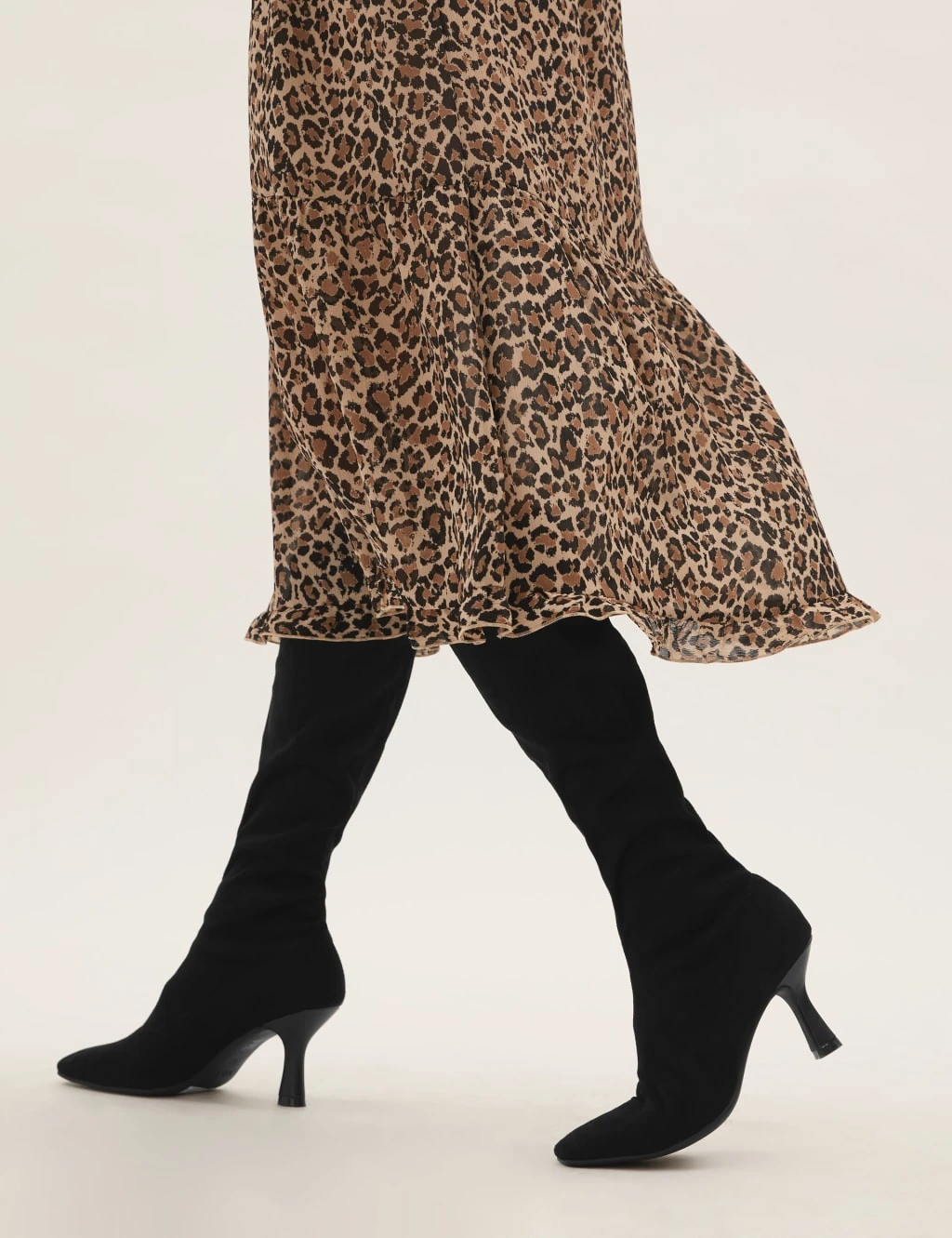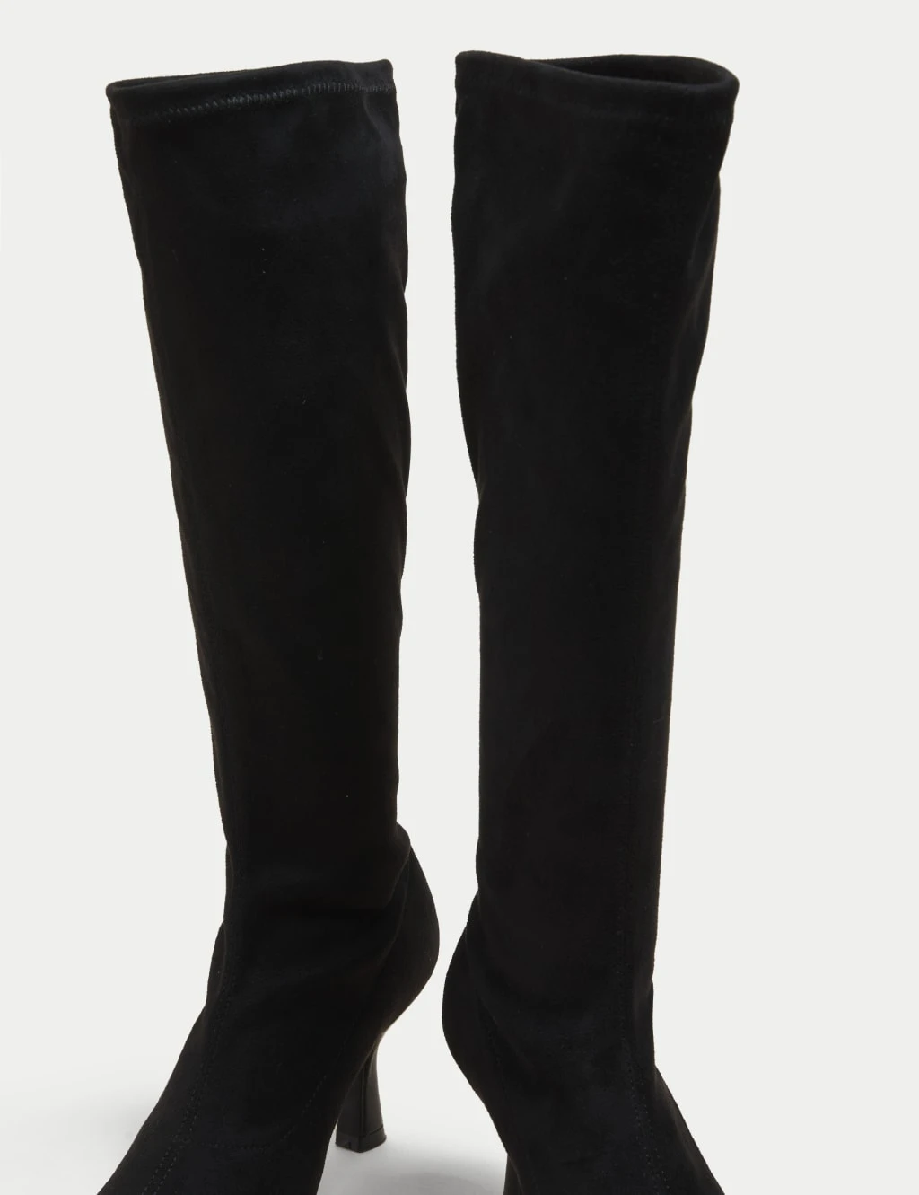 Instantly add extra sharpness to any look with these knee-high boots. Statement square toe and a flared stiletto heel. Insolia® technology redistributes your weight away from the balls of your feet so you can wear your heels comfortably for longer. Complete with antibacterial padding to keep feet fresh.