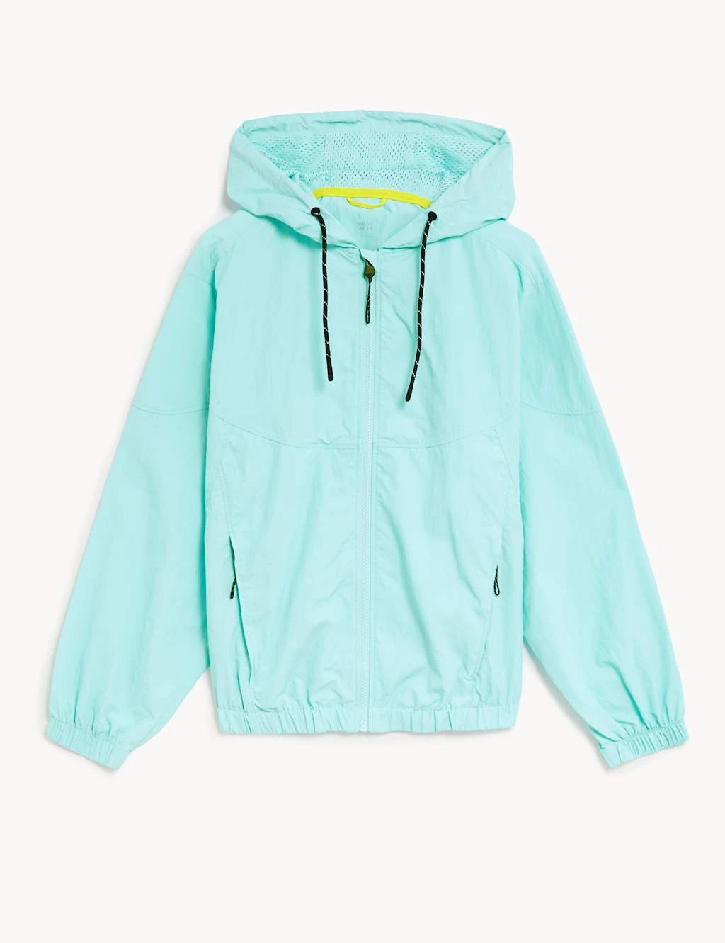 Pull on this hooded jacket from our Goodmove collection for a classic sporty look. It’s cut to an easy relaxed fit, with a zip-through fastening and dropped shoulders for an effortlessly laid-back look. Elasticated detail around the cuffs and hem helps to keep you comfy as you move, while the secure zip pockets on either side offer a practical touch. The design is lightweight and can be packed away, perfect for storing in your gym bag. A water-repellent Stormwear™ finish offers extra protection from the elements.