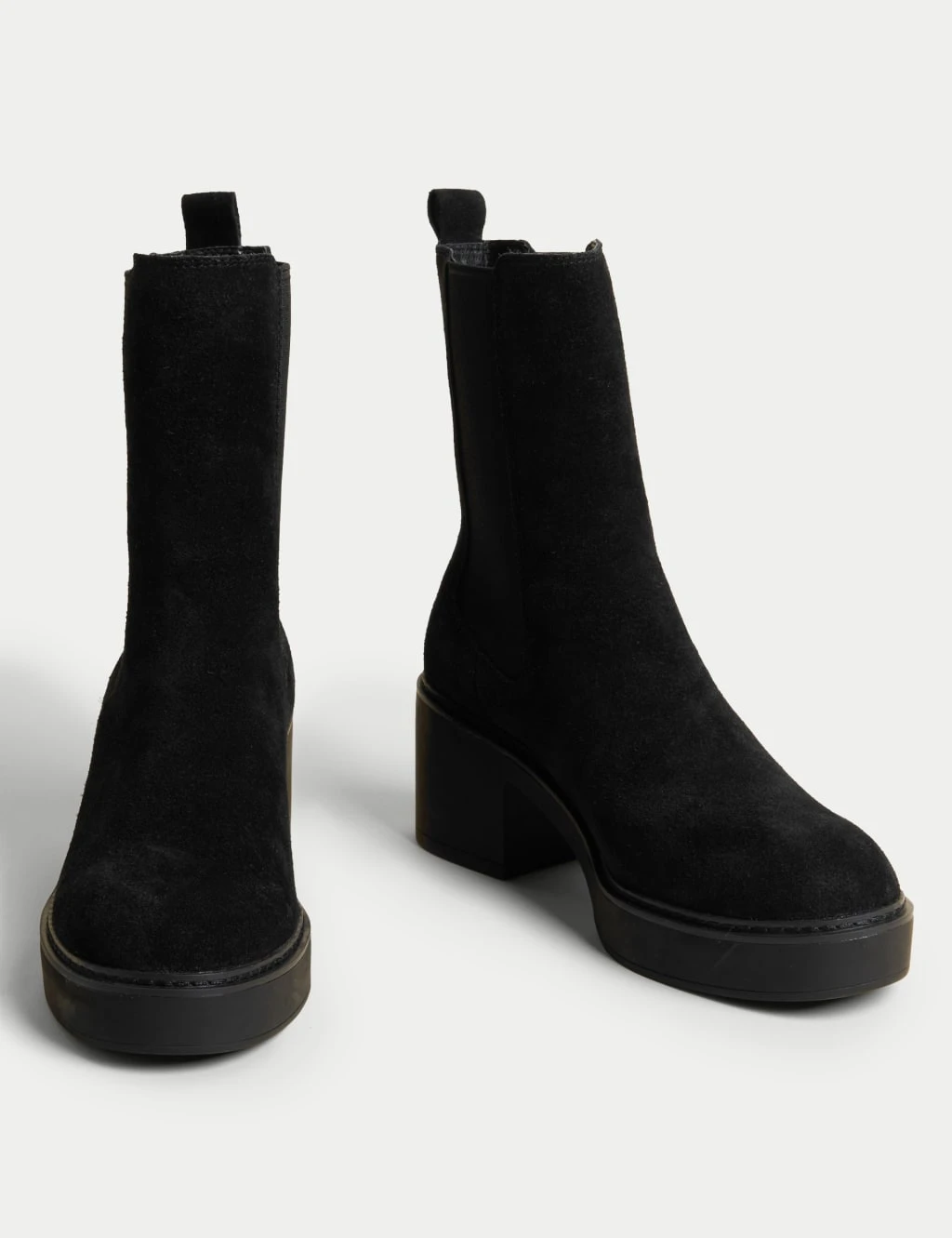 Bring a stand-out touch to your footwear collection with these chunky Chelsea boots in sleek suede. Mid-height block heels offer a striking look and Insolia® technology reduces pressure on the balls of your feet for increased comfort. A water-repellent coating keeps your boots looking newer for longer and antibacterial padding offers freshness within.