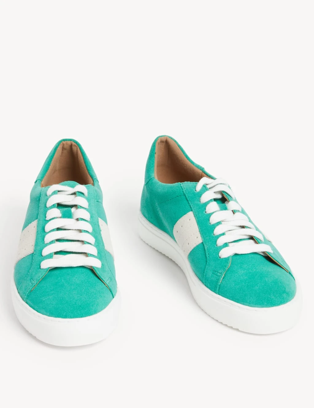 Put your best foot forward in these suede trainers. They’re styled with a timeless lace-up front and contrasting colour panels for a striking look. Smart Insolia Flex® technology makes walking more comfortable with correct foot placement. Antibacterial padding keeps them fresh. Made with responsibly sourced leather.