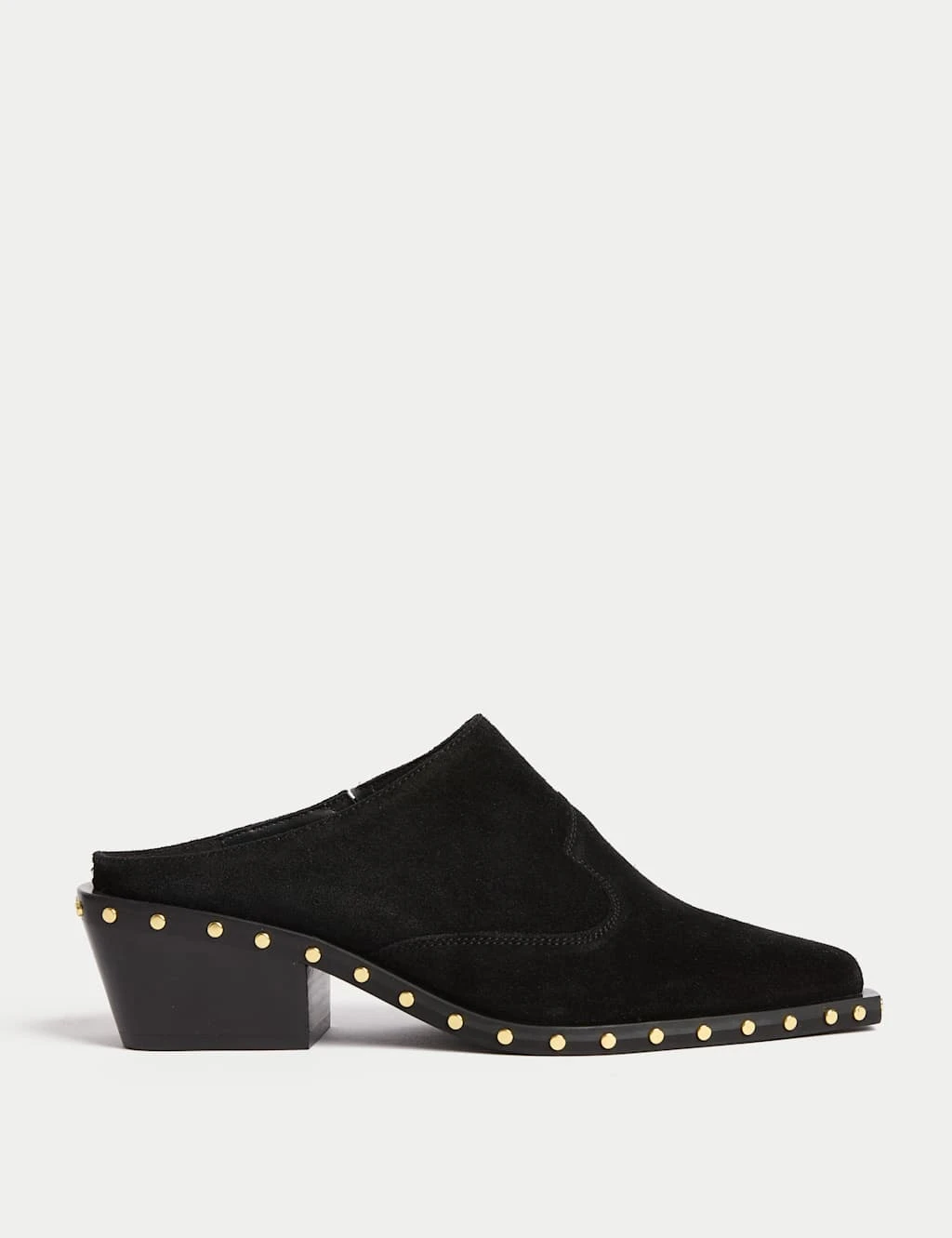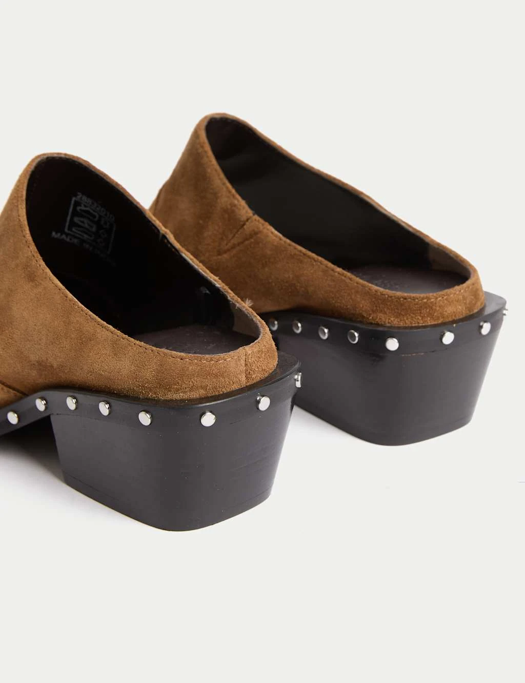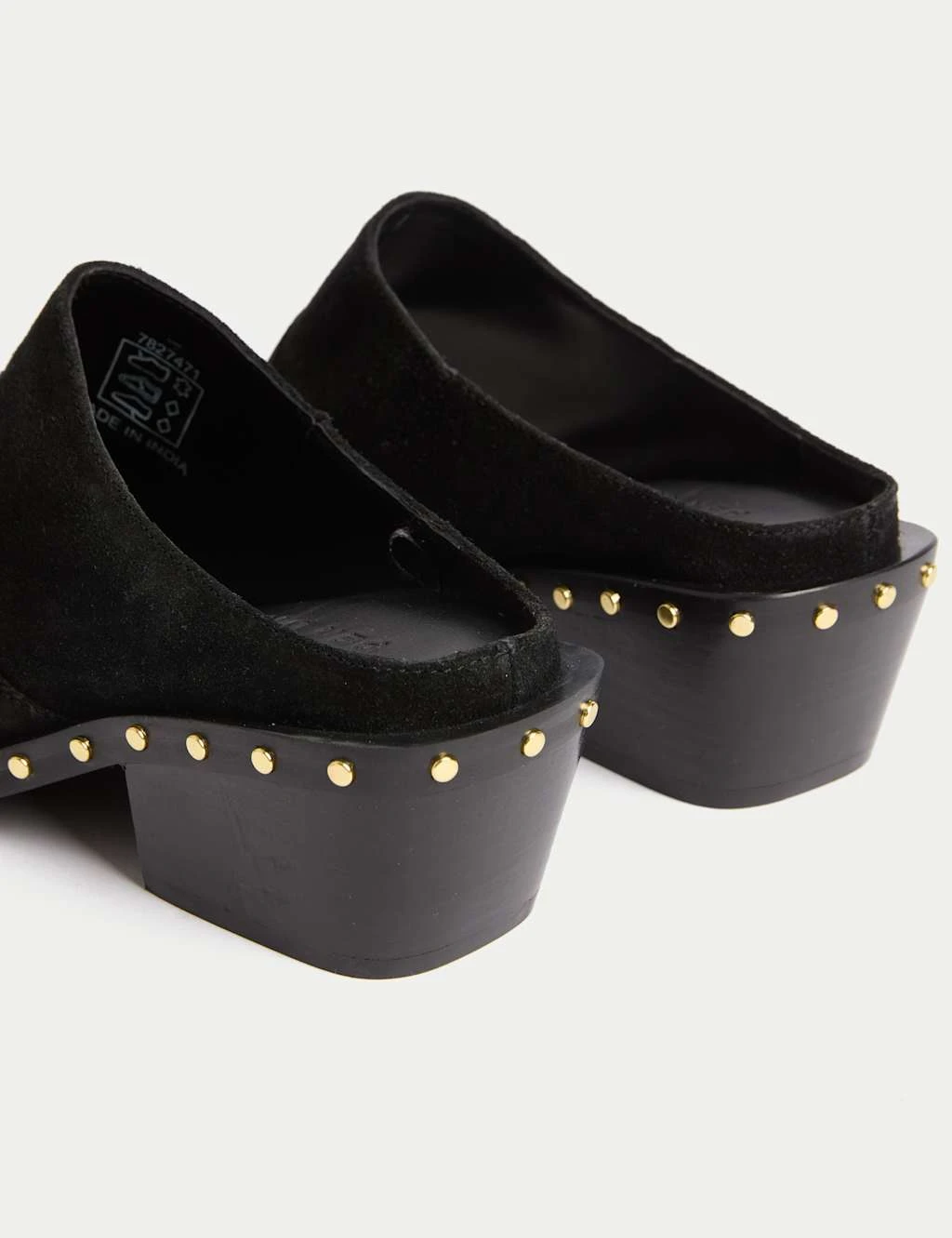 These clogs from our Per Una collection are crafted from suede for a luxurious look. The slip-on design features a comfy mid-height block heel and a stylish open toe. Stud detailing around the rand adds a touch of on-trend embellishment. Per Una: stylish designs crafted with carefully considered details and feminine flourishes.