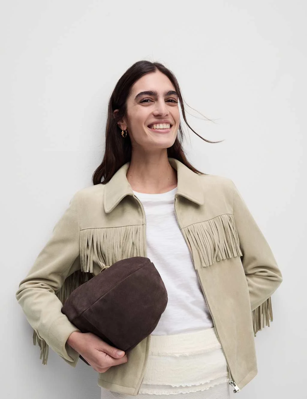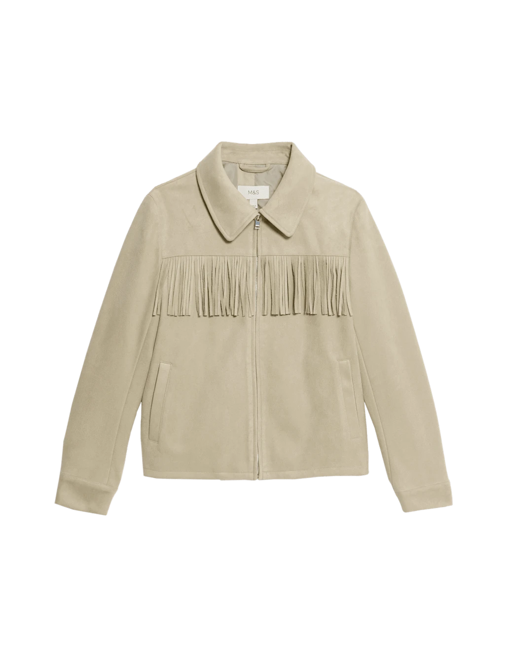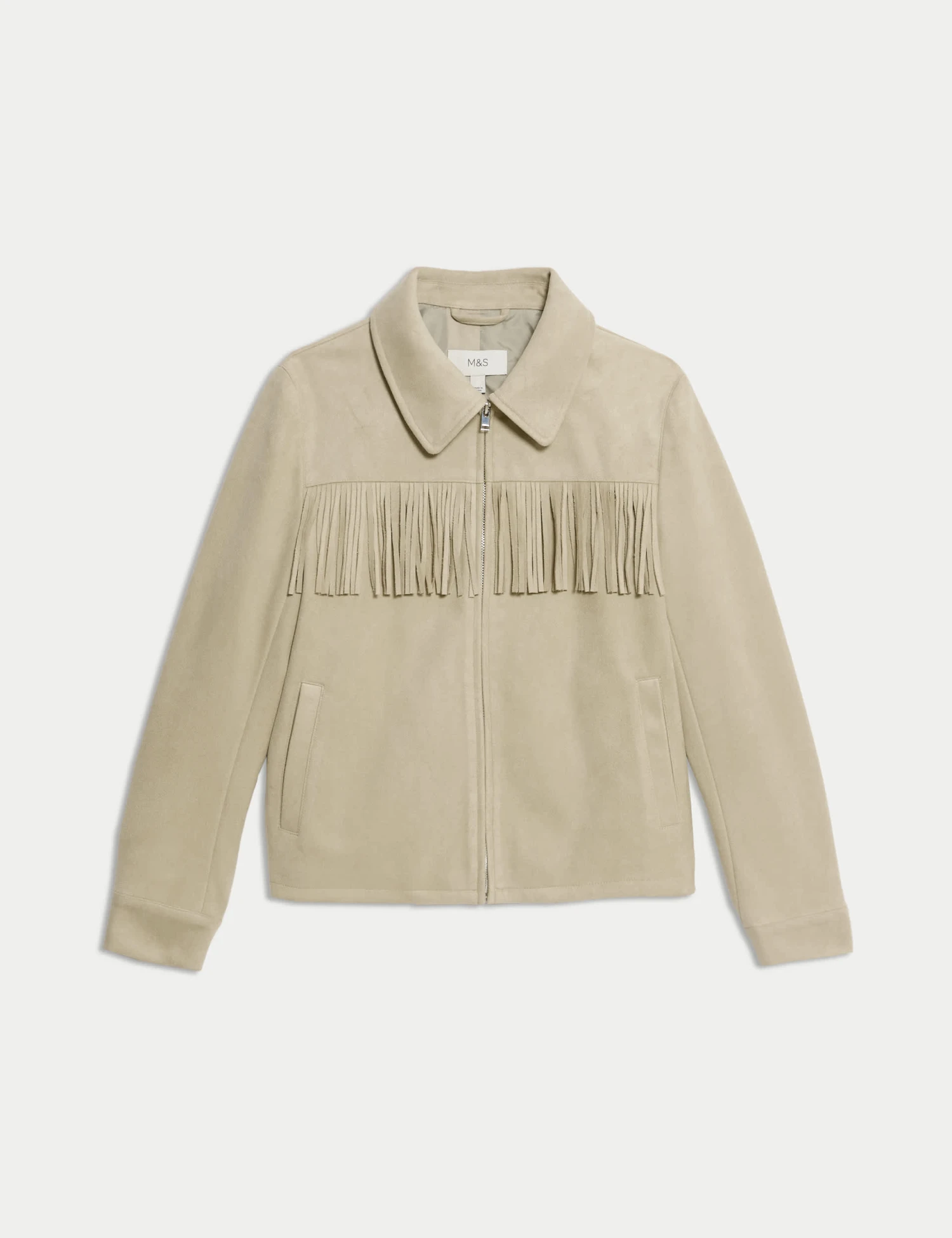Elevate your smart-casual collection with this suedette jacket. It comes in a regular fit, featuring a fringed design on the front, back and sleeves to add a modern aesthetic. The collar leads to a zip-through fastening for a neat touch. It’s complete with two side pockets to give a convenient finish. M&S Collection: easy-to-wear wardrobe staples that combine classic and contemporary styles.