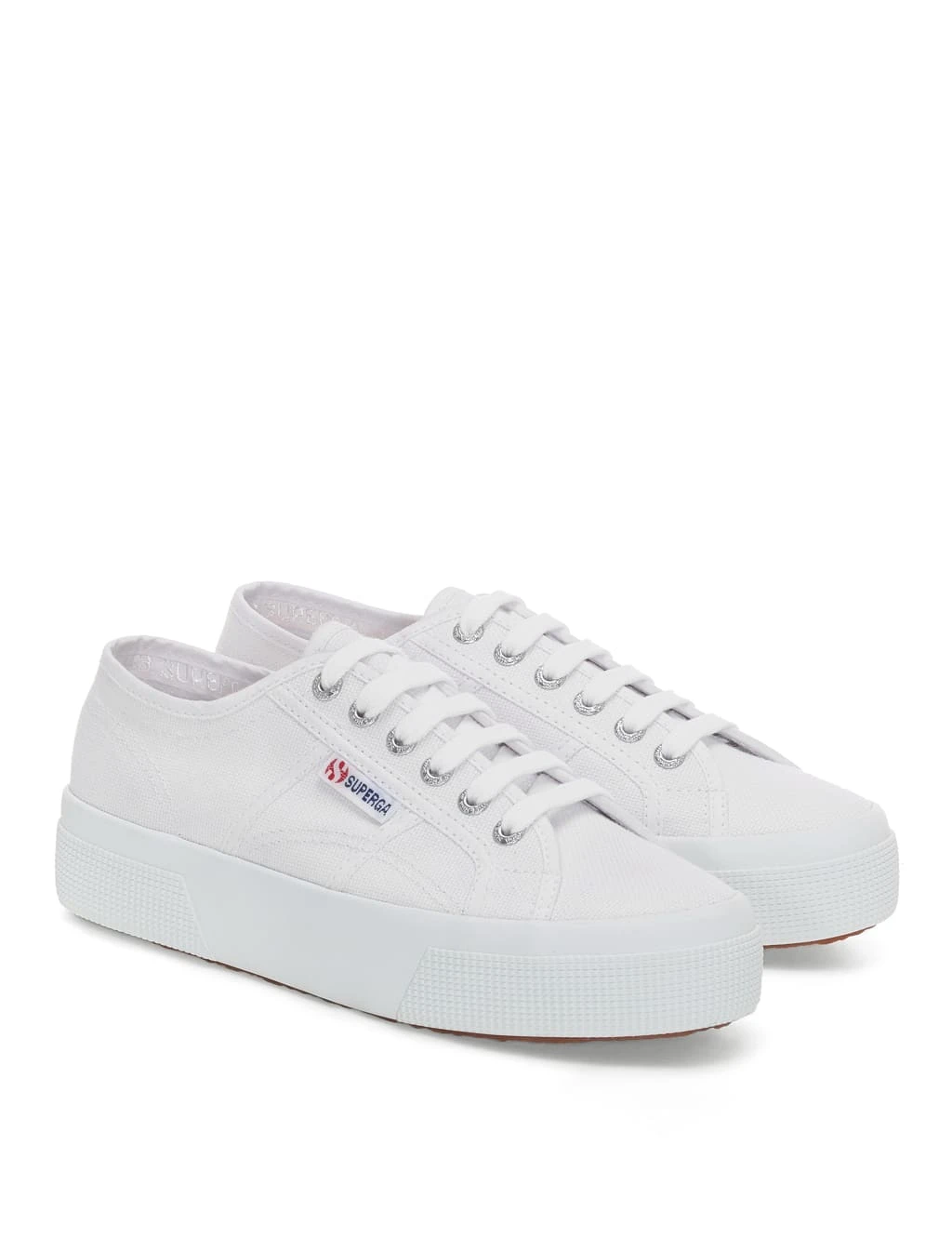 Combining comfort with casual appeal, these cotton canvas trainers by Superga will become your go-to footwear. The round-toed upper is set on a contrasting midform sole for an on-trend shape and a statement look. These adjustable lace-ups are complete with metallic eyelets and finished with a logo tab on the side.