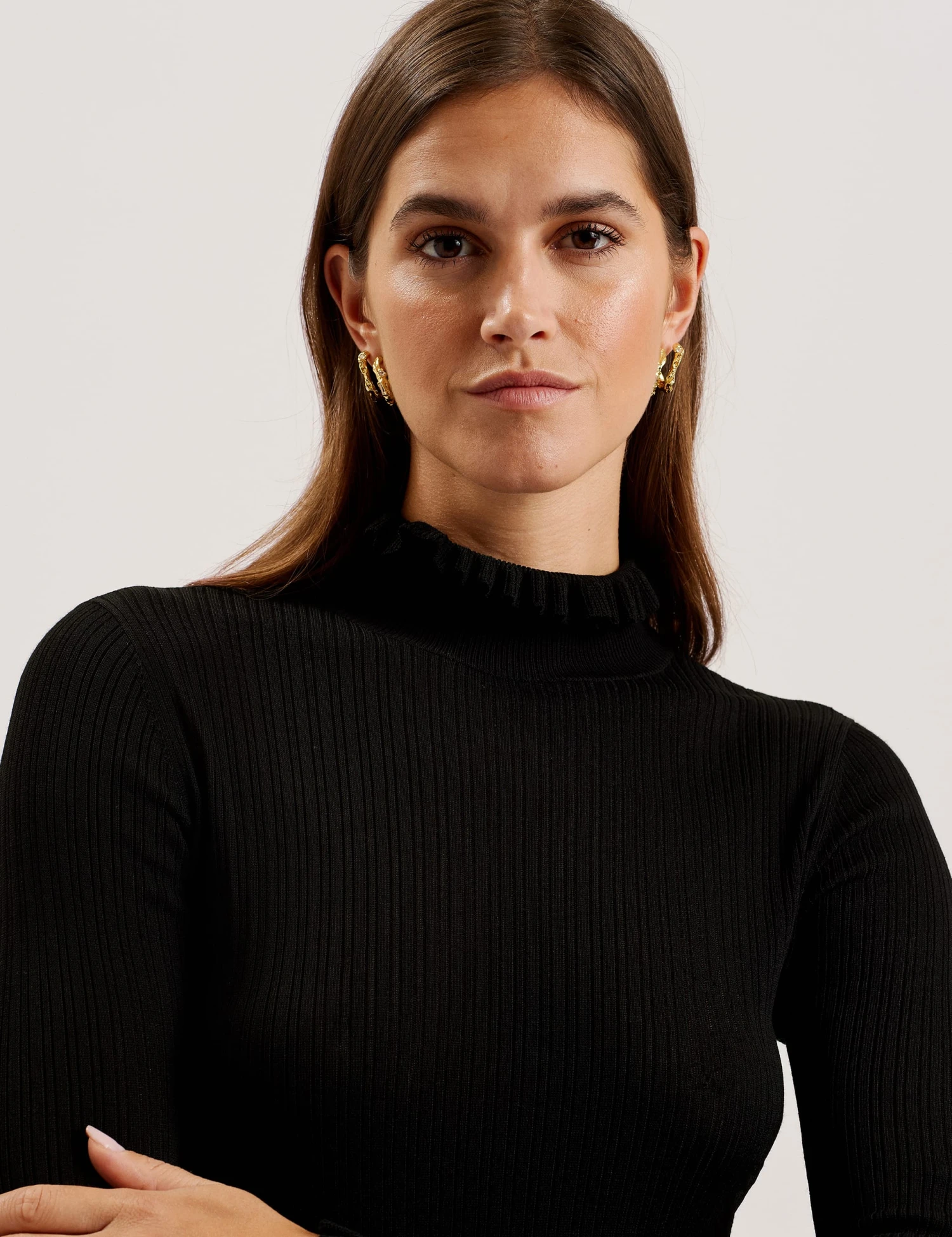 Bring a playful touch to your knitwear collection with this Ted Baker jumper. It’s made in a regular fit from a soft ribbed fabric. A frill trim on the sleeves adds a feminine flourish. This piece is complete with a cosy funnel neckline.