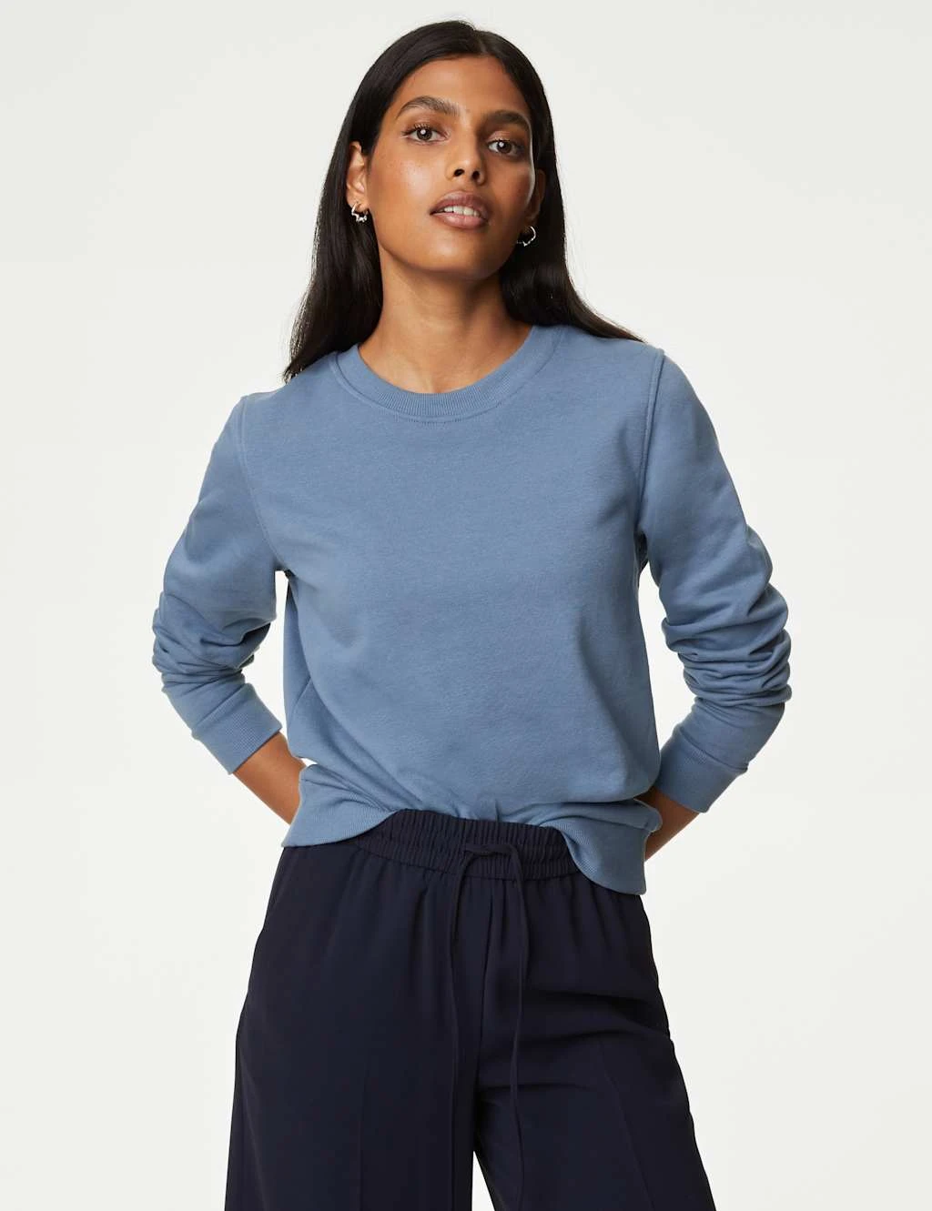 Take a relaxed approach to everyday dressing with this crew-neck sweatshirt. An easy, throw-on-and-go style, it’s made using responsibly sourced cotton and has a cosy brushback finish. Matching joggers are available, but it can be worn with jeans, skirts and even over dresses, too.