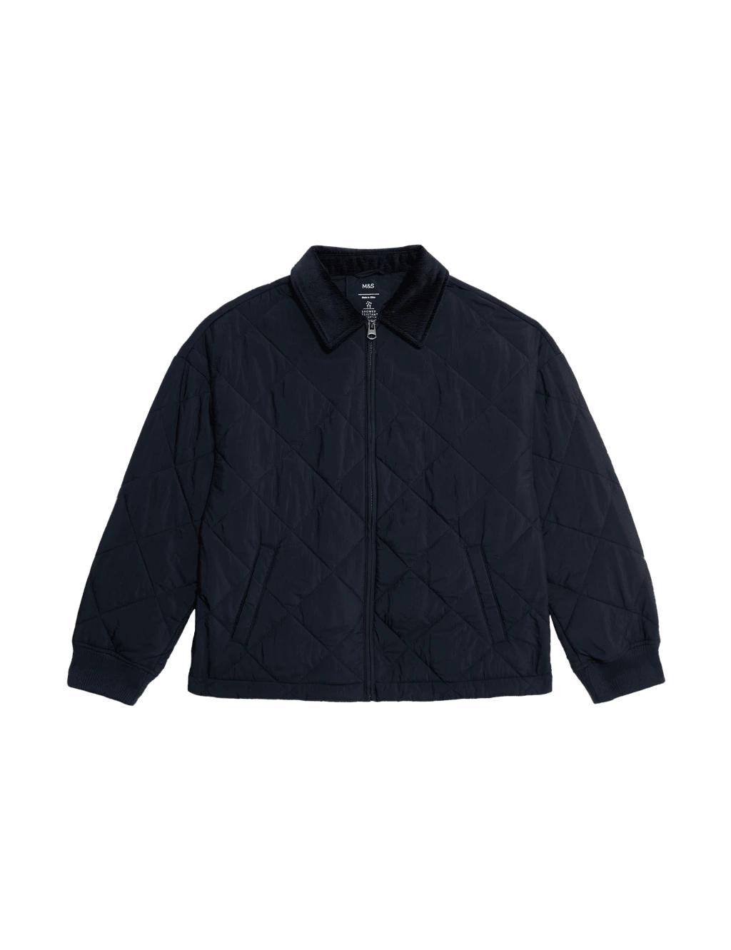This lightweight diamond-quilted jacket is a versatile addition to your cold-weather wardrobe. It’s designed in a regular fit, with a cord collar and ribbed cuffs for comfort. A shower-resistant Stormwear™ finish and Thermowarmth™ insulation keep you warm and dry. The piece is complete with a zip fastening and two side pockets. M&S Collection: easy-to-wear wardrobe staples that combine classic and contemporary styles.