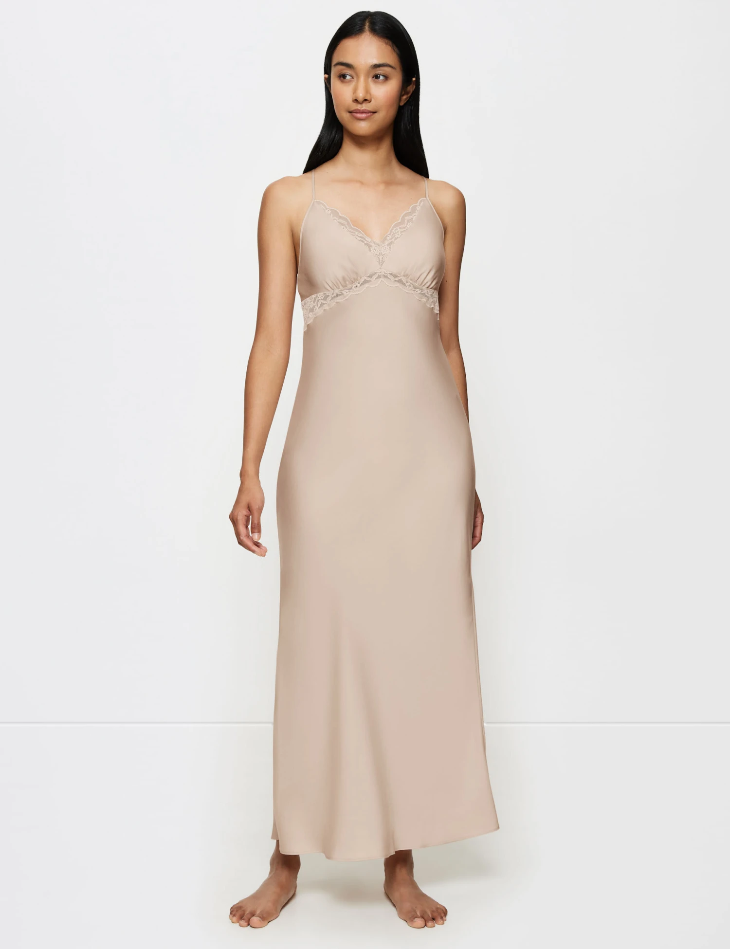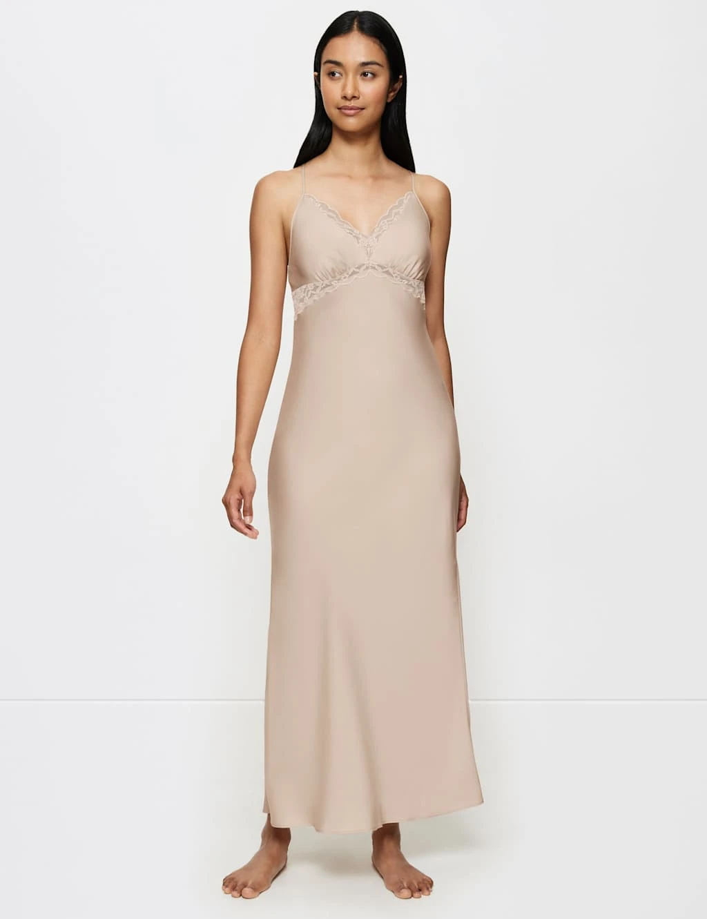 Bring a romantic flourish to your sleepwear with this nightdress from Triumph. This regular fit style is crafted from soft and silky fabric with a sophisticated long hem. Lace detailing on the bodice adds a delicate touch.