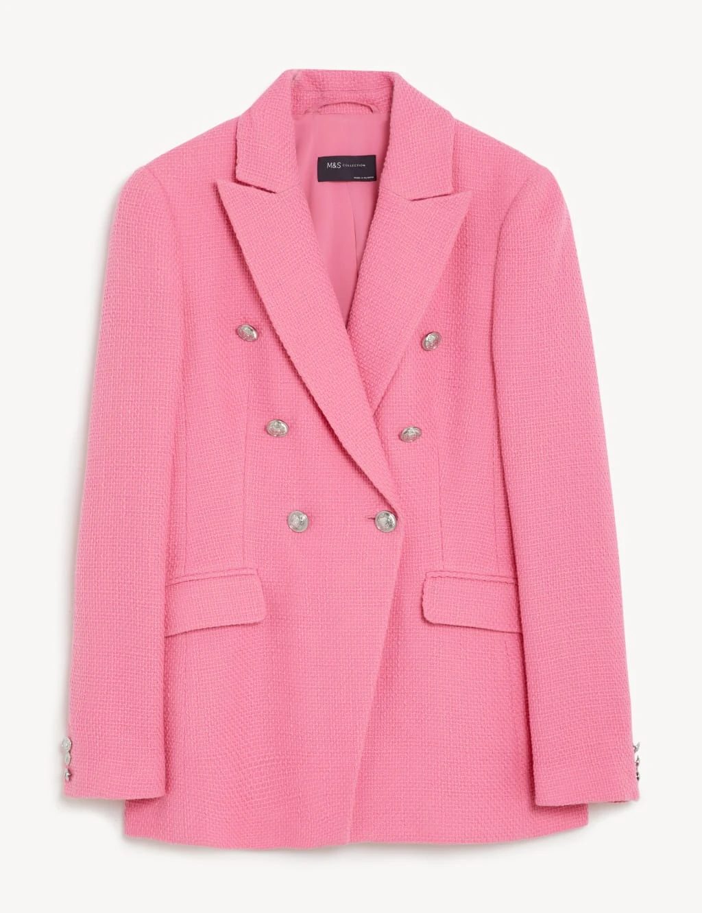 Throw on this sophisticated tweed blazer to elevate your daytime and office looks. The smart textured design is double breasted and crafted to a comfy tailored fit. It’s finished with welt pockets and button detailing on the front for a glamorous feel.
