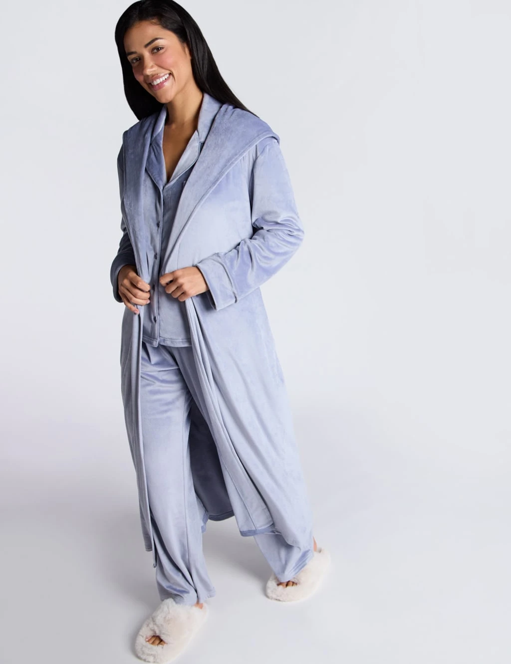 This super-soft velour dressing gown from Boux Avenue is a plush addition to your downtime essentials collection. It’s made in a cosy long length, with a self-tie belt for an adjustable fit. The snuggly hood provides extra warmth and comfort.