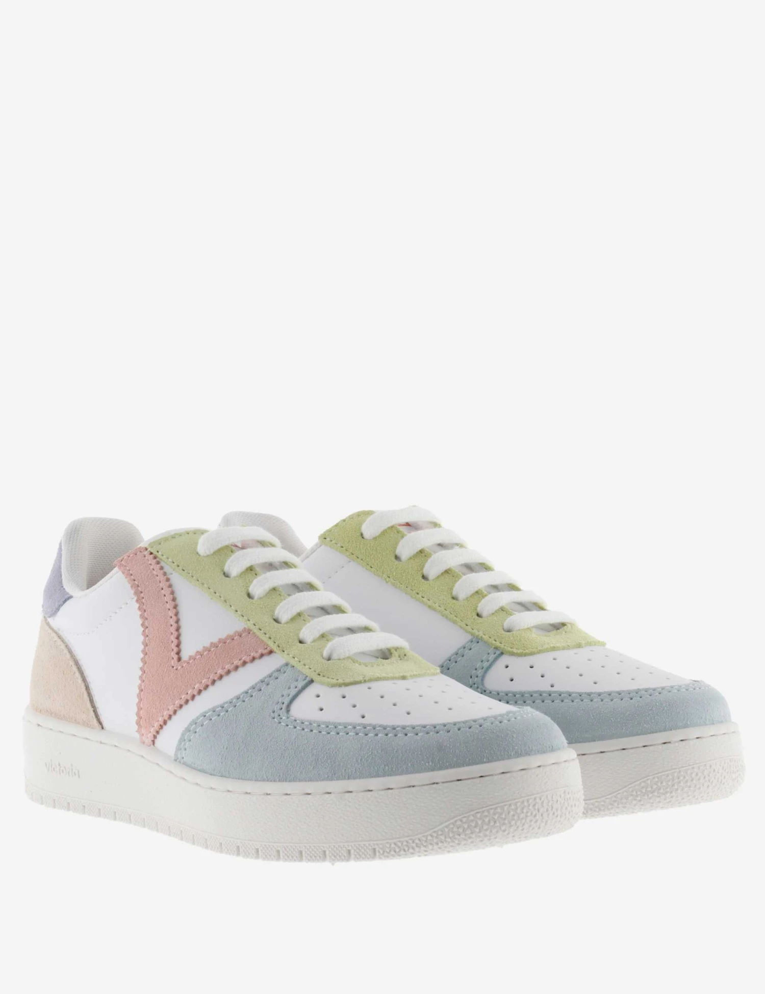 Bring a standout touch to your off-duty outfits with these colour block trainers by Victoria. They’re crafted from smooth leather for a premium feel, with a breathable toe panel to keep you comfortable. Contrast suede detailing creates a striking look, and includes the brand’s logo for a signature finish.
