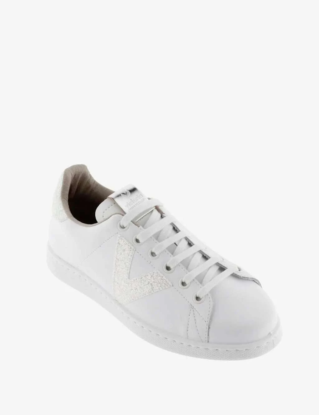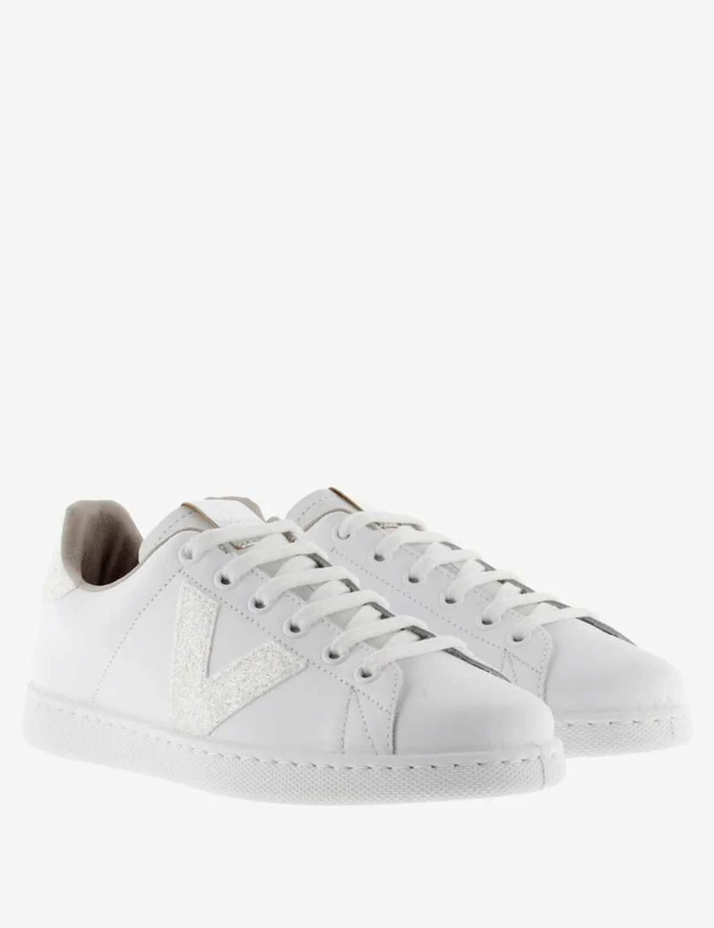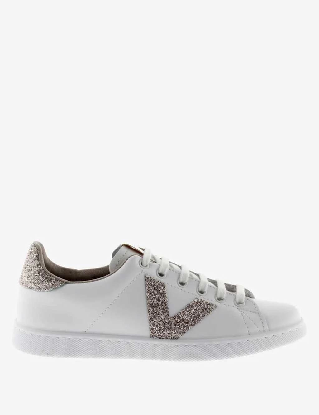 Add a sparkling touch to outfits with these sleek leather trainers from Victoria. They’re designed in a sports-inspired silhouette with a timeless lace-up closure. Glitter detailing on the ‘V’ and heel adds a statement feel. These minimalist trainers are finished with a branded tab on the tongue for a signature finish.