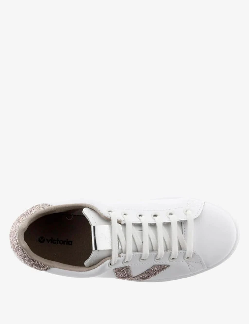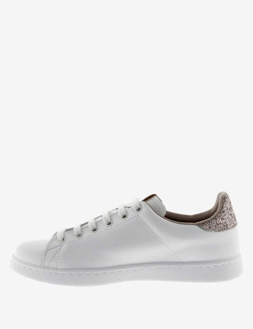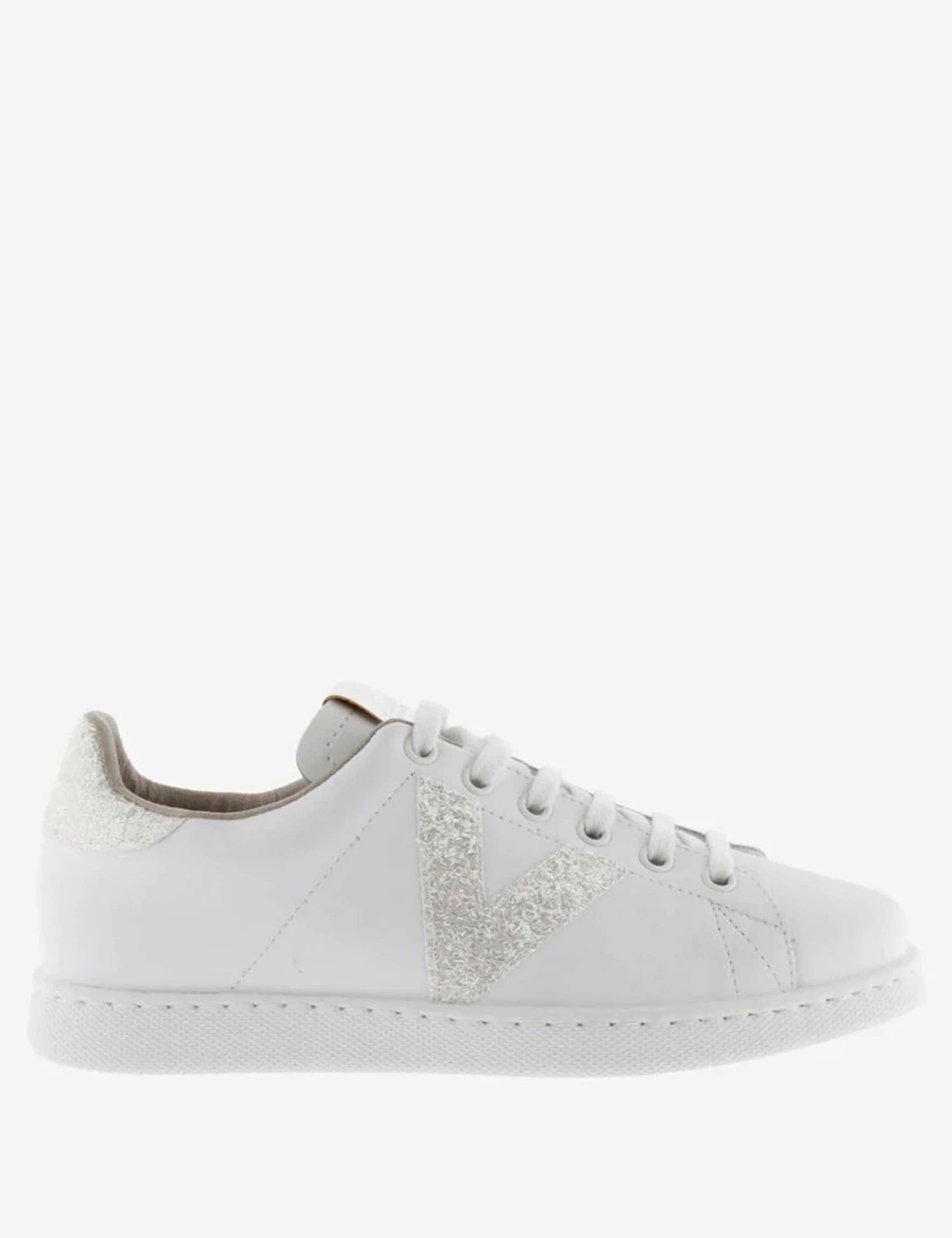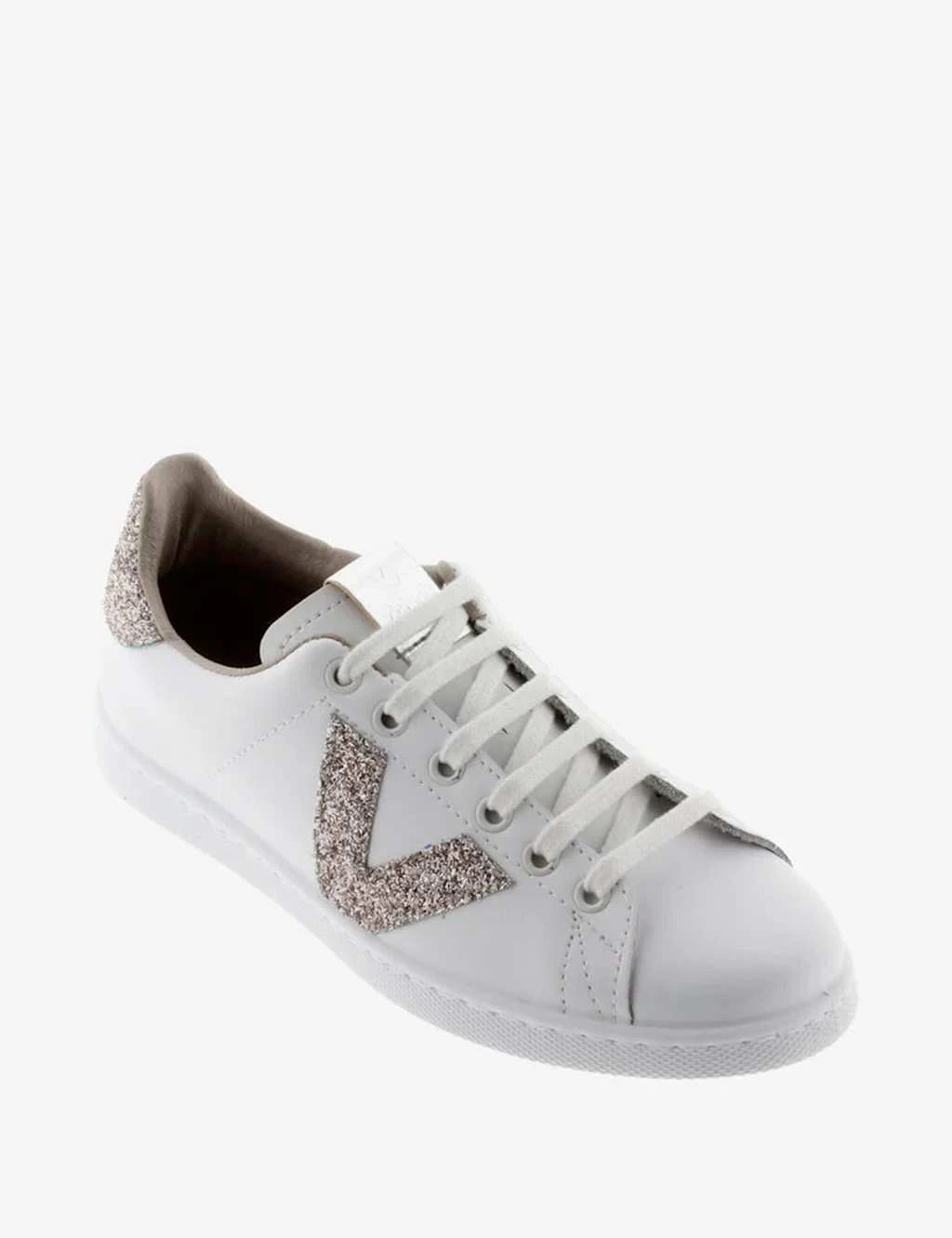 Add a sparkling touch to outfits with these sleek leather trainers from Victoria. They’re designed in a sports-inspired silhouette with a timeless lace-up closure. Glitter detailing on the ‘V’ and heel adds a statement feel. These minimalist trainers are finished with a branded tab on the tongue for a signature finish.