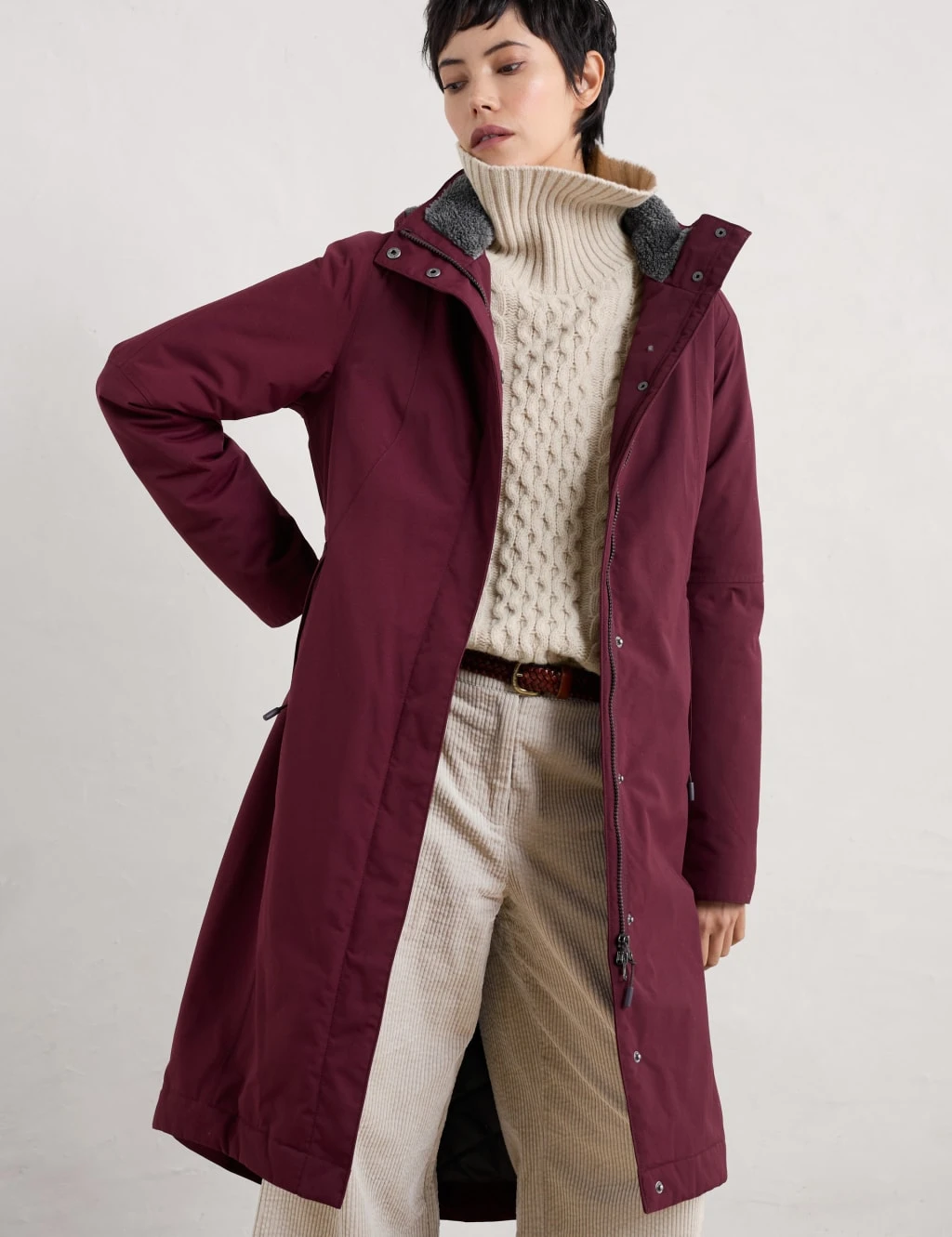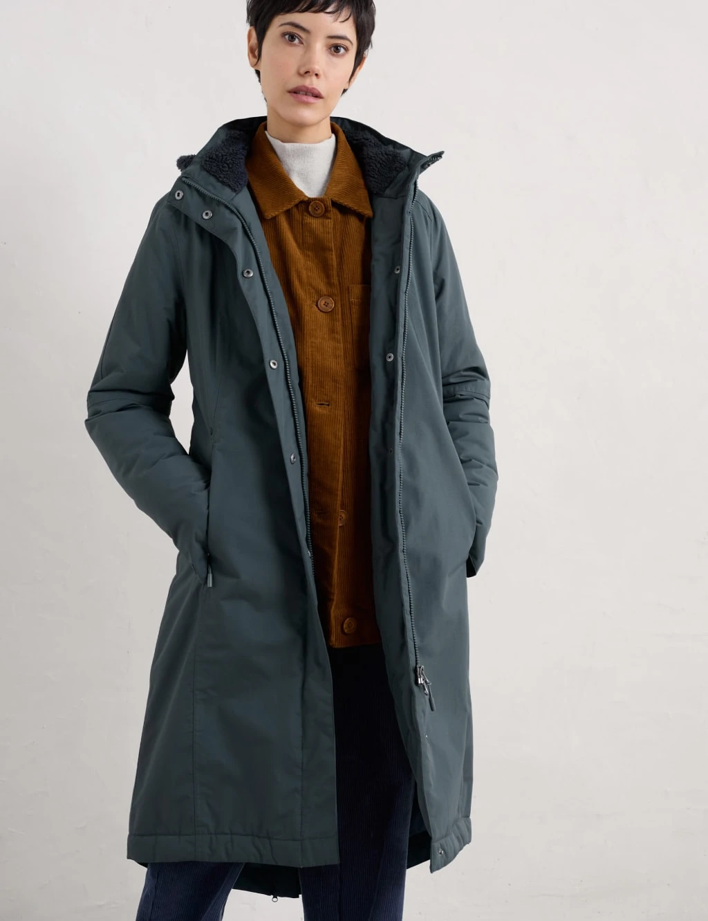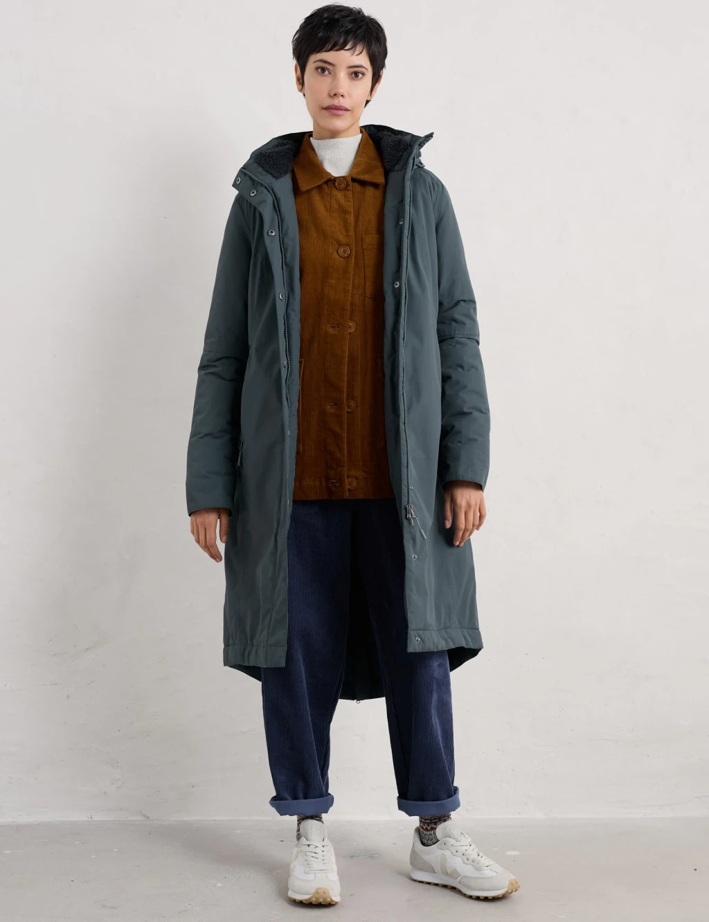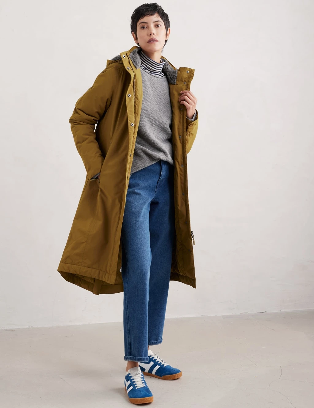 This Seasalt Cornwall parka is made from waterproof fabric to protect you from the elements. It’s cut to a regular fit, with a flattering longer length. A hooded neckline and a faux fur trim add to the cosy feel, while a quilted lining provides extra warmth. This piece features a zip and popper fastening, plus handy flap pockets. The brand’s signature anchor buttons on the cuffs and a branded badge on one pocket provide the final authentic touches.