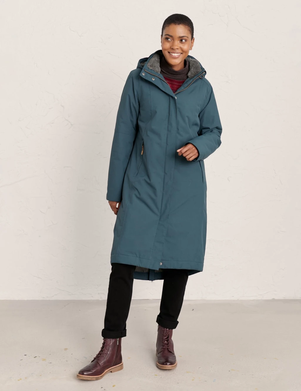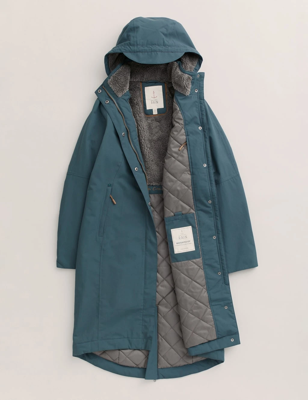 Meet Seasalt Cornwall’s elegant take on the raincoat. This waterproof style has a relaxed longline fit, perfect for layering up underneath. Inside, it combines a fleece upper lining with a lower quilted lining for a cosy, warm feel. It’s complete with a zip and poppers for a secure fastening.