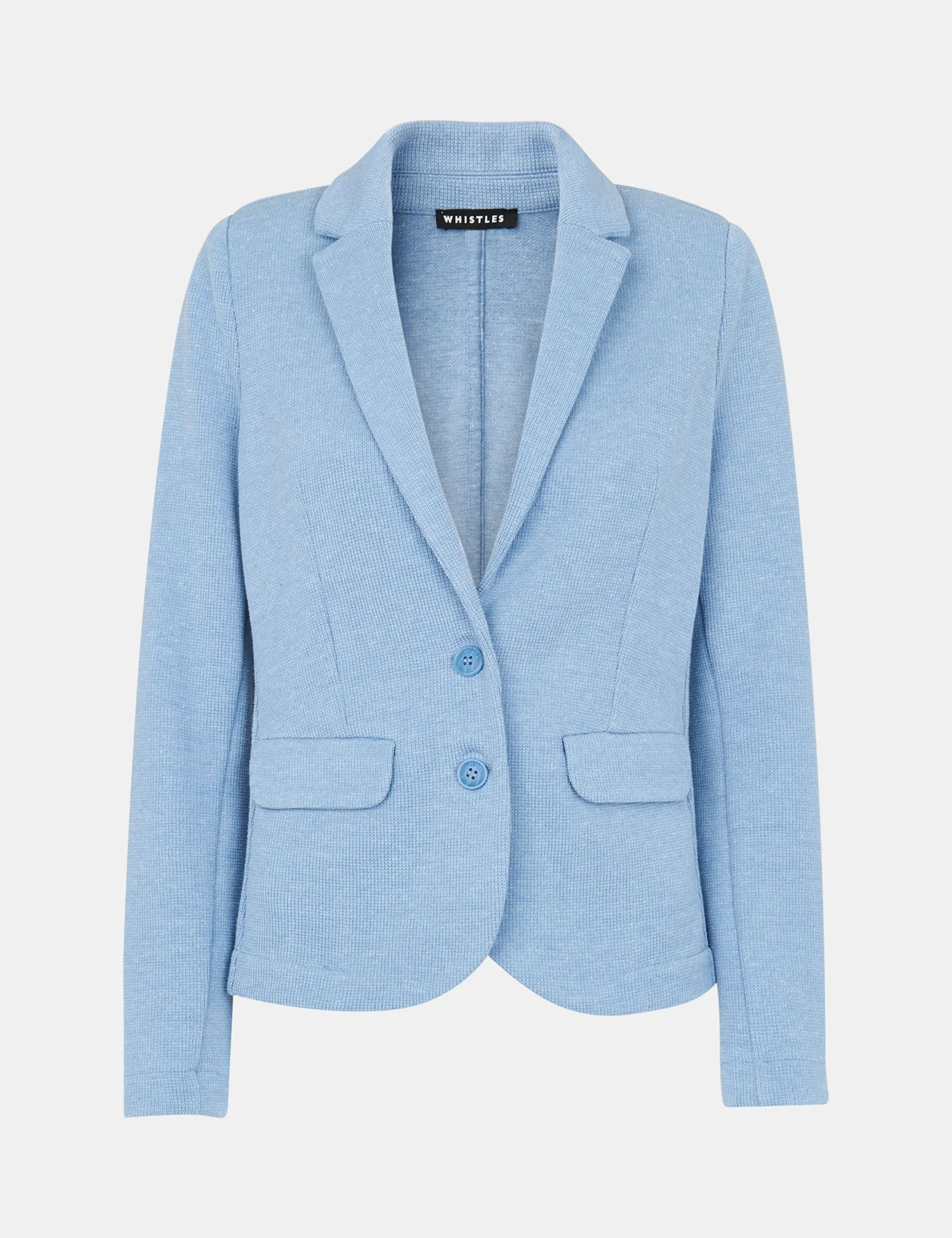 This blazer jacket from Whistles is crafted from jersey for a soft and comfortable feel. It’s designed in a flattering slim fit with notch lapels and a single-breasted, two-button closure. A vent at the back ensures you can move freely, while two flap pocket details add a classic tailored finish.