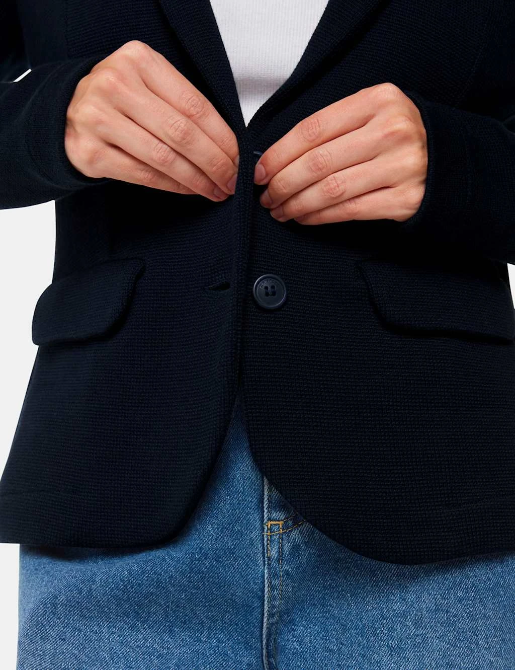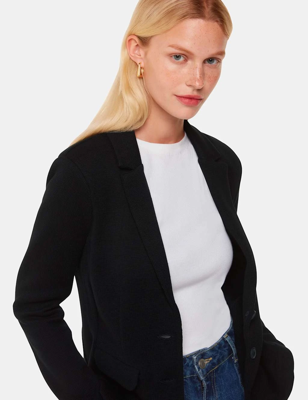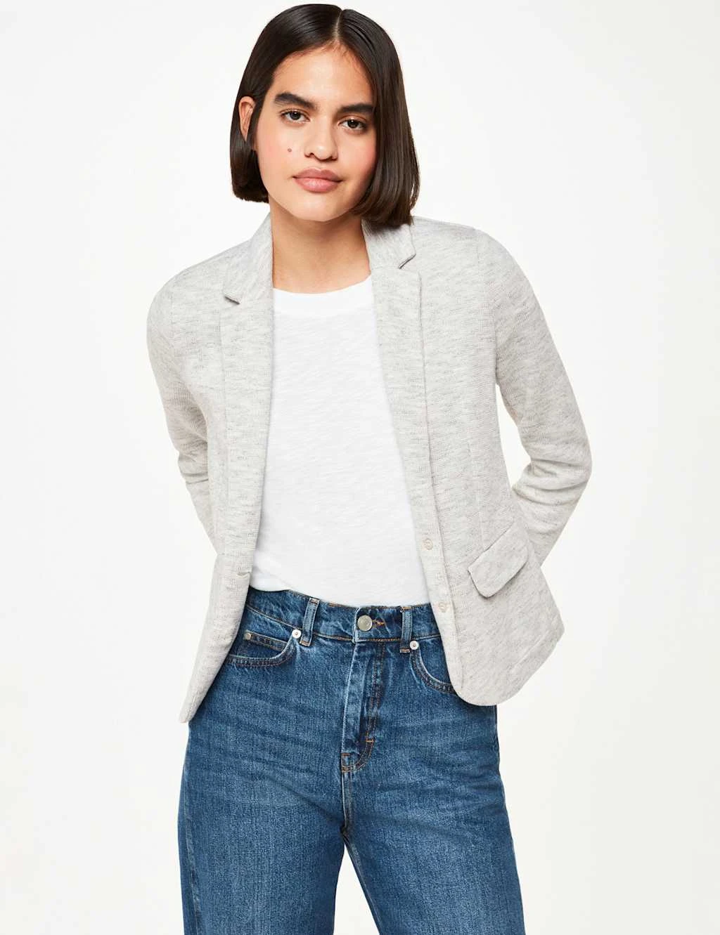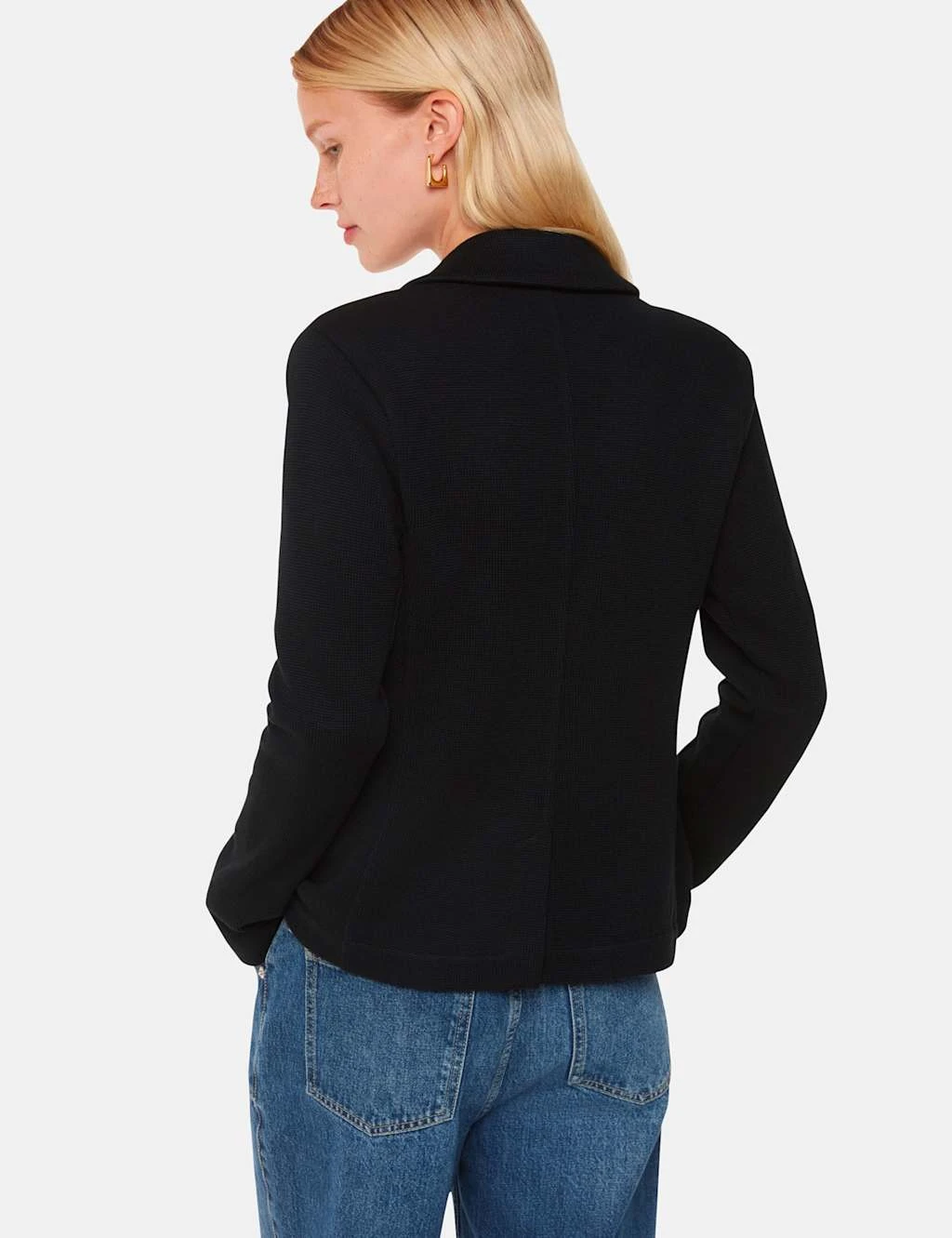This versatile jersey blazer from Whistles is ideal for work or weekends. It’s crafted from pure cotton for a comfortable and breathable feel, to a tailored slim fit. This single-breasted style features a lapel collar and a two-button fastening, plus a nipped-in waist for a flattering silhouette. It’s complete with two flap pockets and a single back vent.