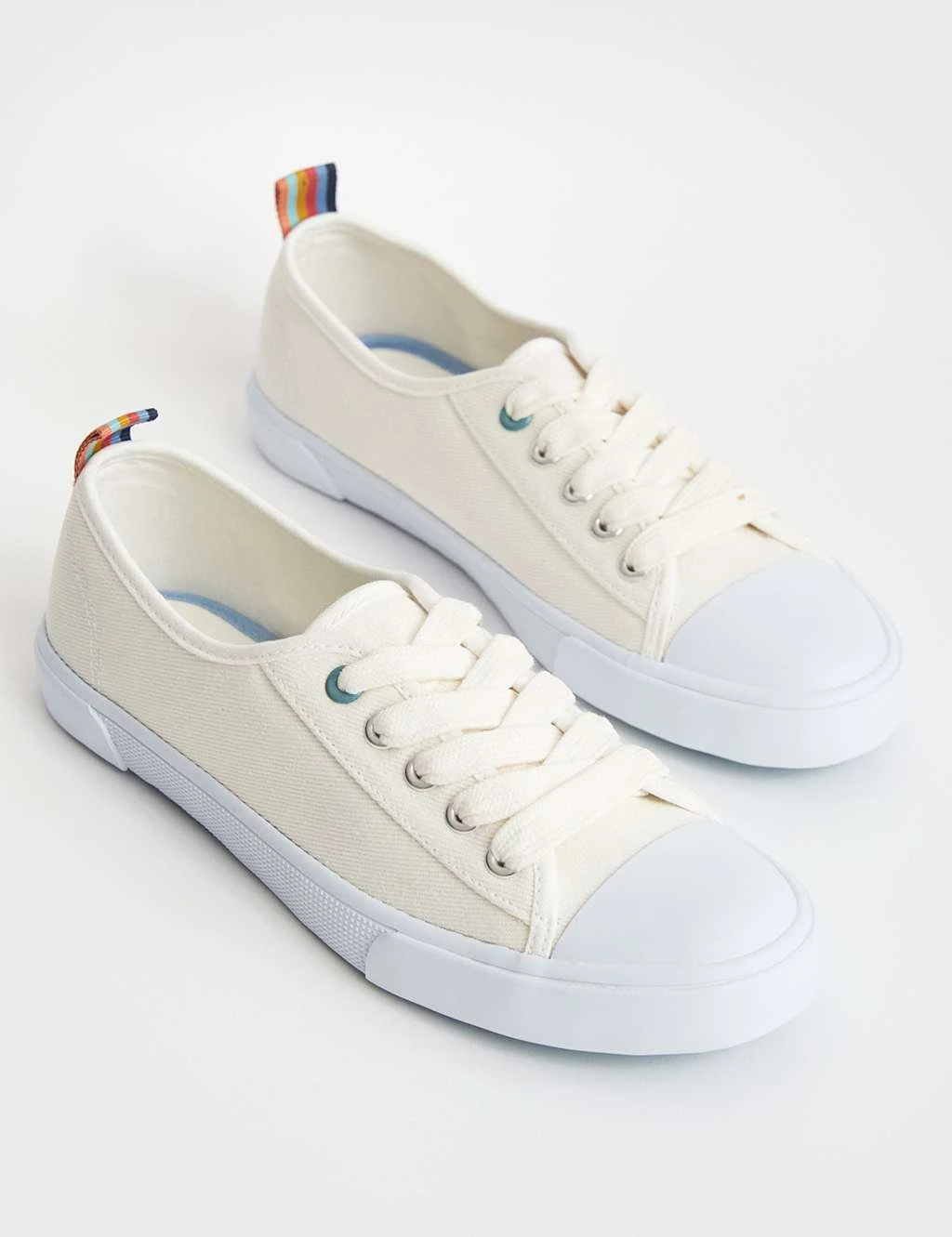 These White Stuff lace up pumps are embellished with fun pops of colour for a playful feel. They’re designed in an easy standard fit, with a comfortable flat heel and decorative laces. The heels are finished with rainbow-striped tabs and a fun block colour on the soles.