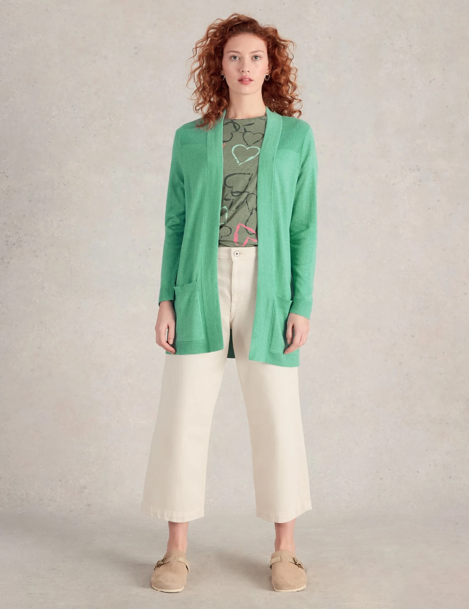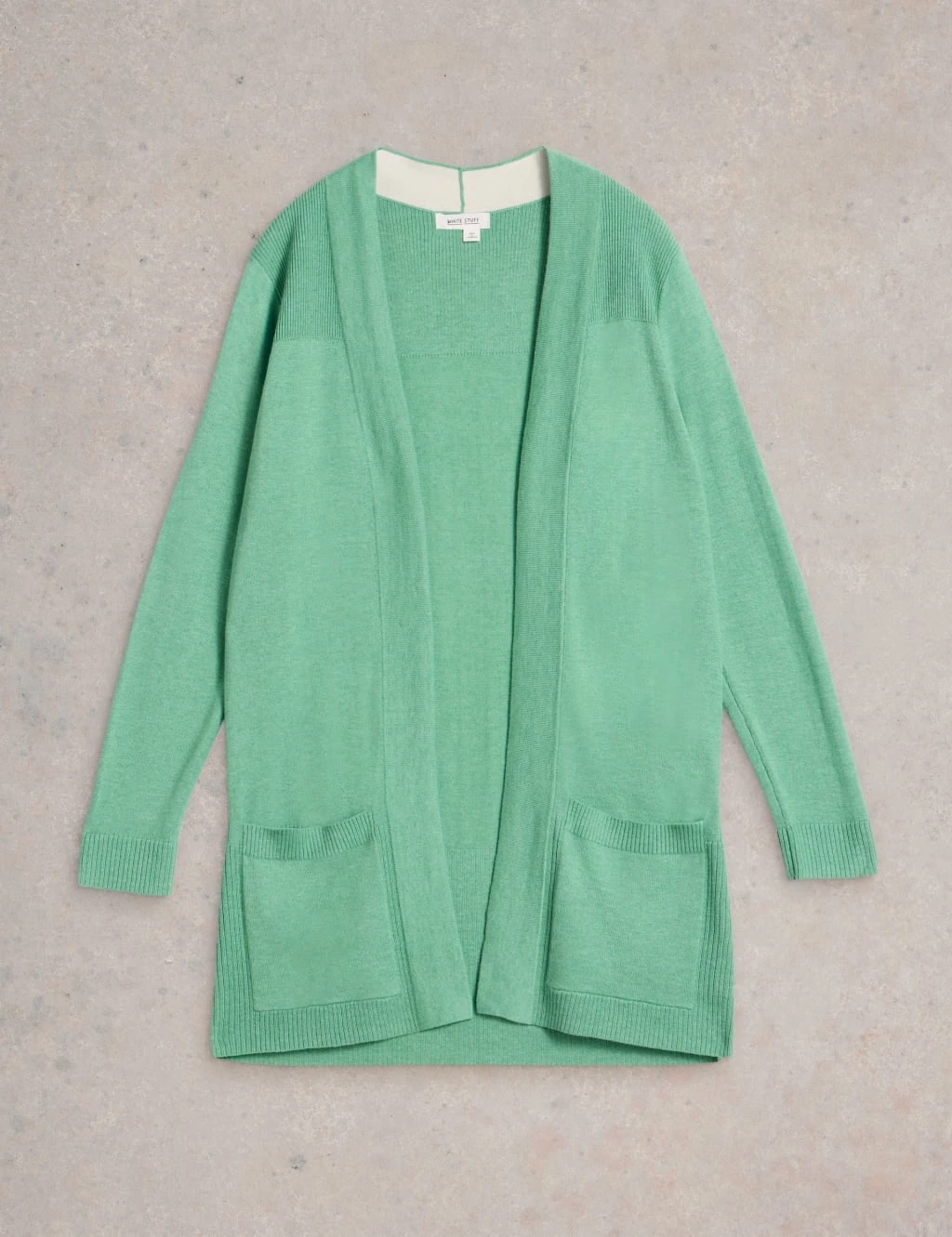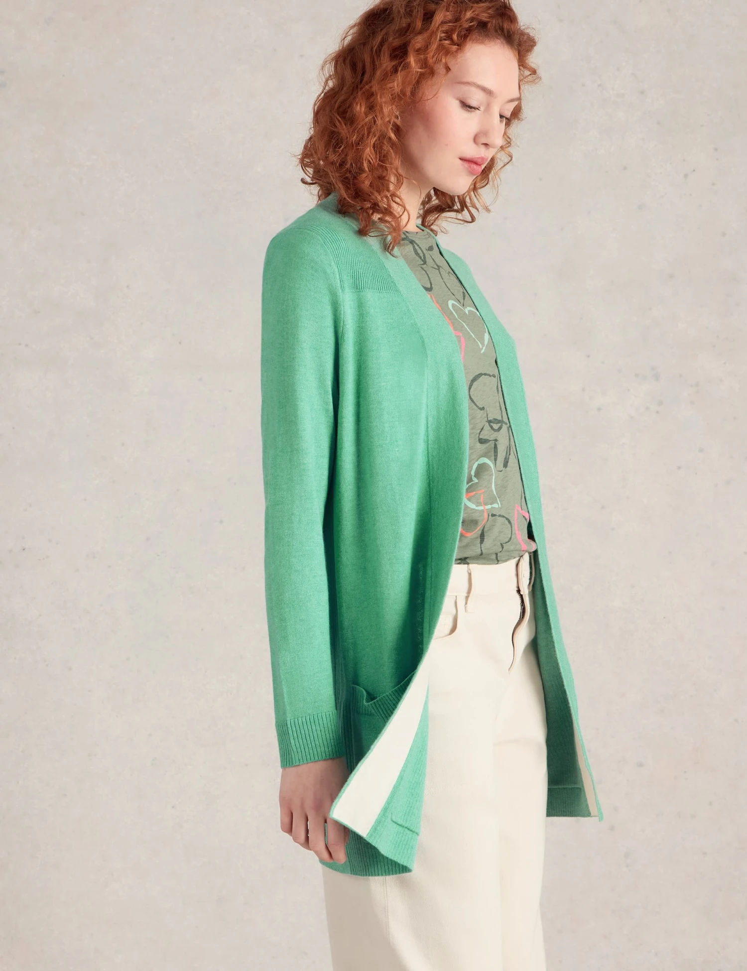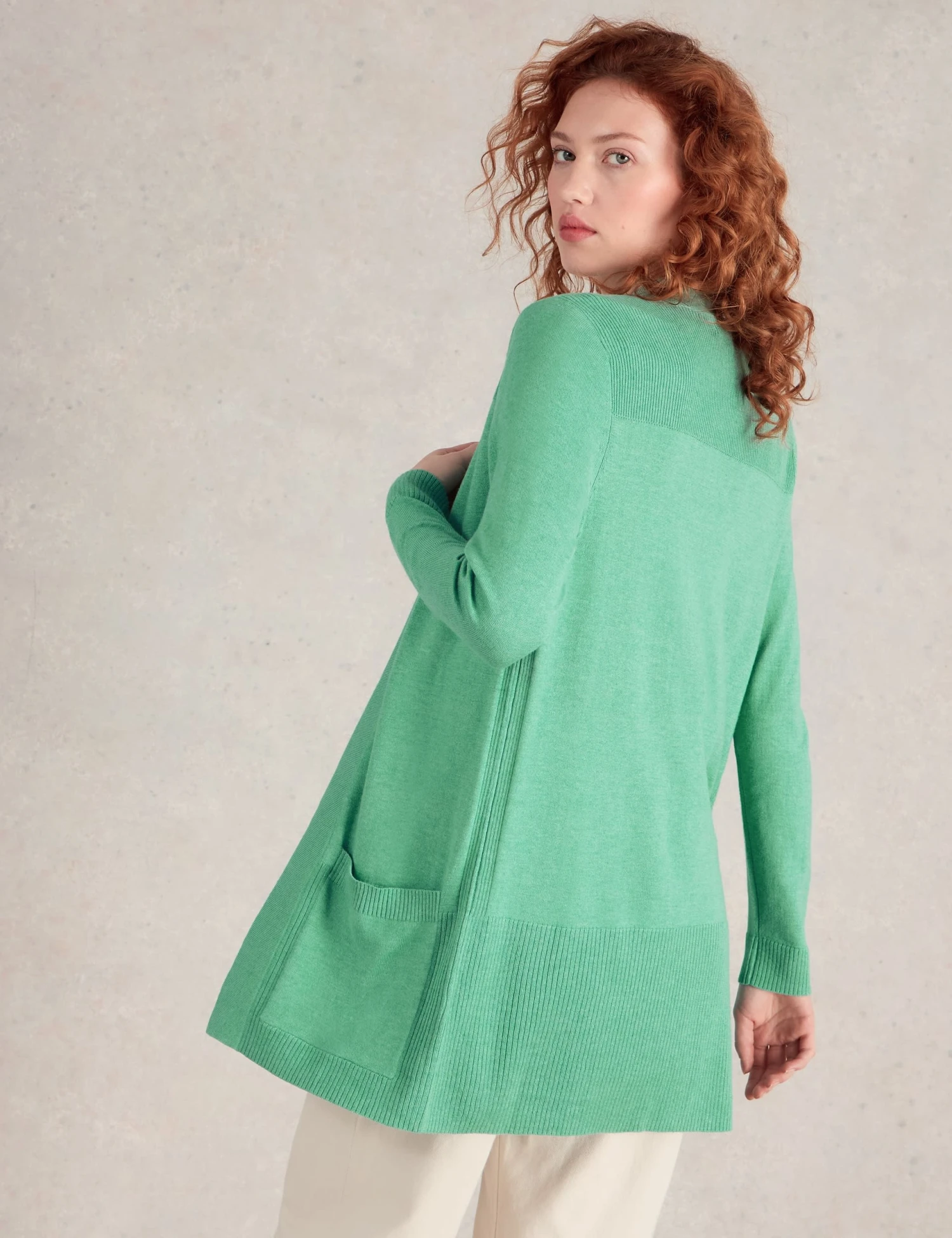 This fine-knit, cotton-blend cardigan from White Stuff is an easy piece for smart-casual occasions. It’s designed in a regular fit with an open front and simple, longline shape. Ribbed panels at the shoulders and back hem add texture, while a contrasting inner placket brings a touch of extra colour. This versatile cardi is finished with two handy patch pockets on the front.