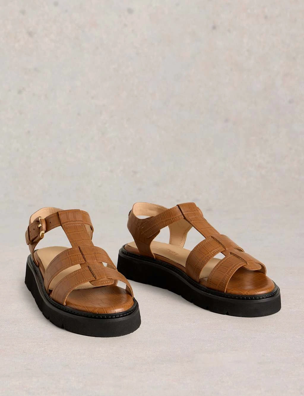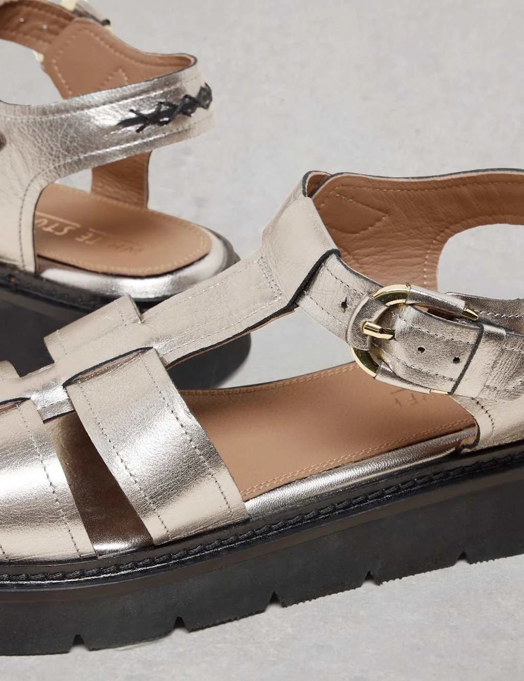 These platform sandals from White Stuff bring a chic edge to the classic fisherman style. The caged, open-toe design is crafted from shiny metallic leather, and elevated by flat contrast soles with comfy footbeds. Decorative stitching and a chunky buckle on the ankle strap complete the glam look.