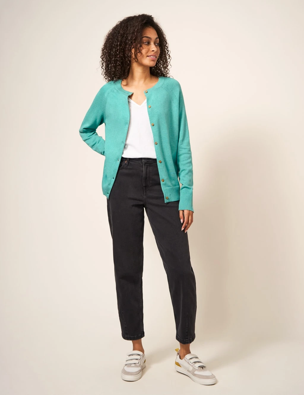 This White Stuff cardigan is knitted from pure cotton yarn, making it a light and breathable extra layer. It’s made in a comfy regular fit, with an easy crew neckline and neat button fastenings. Openwork stitching adds delicate texture at the shoulders, while ribbed trims at the cuffs and waistband bring a neat finish.