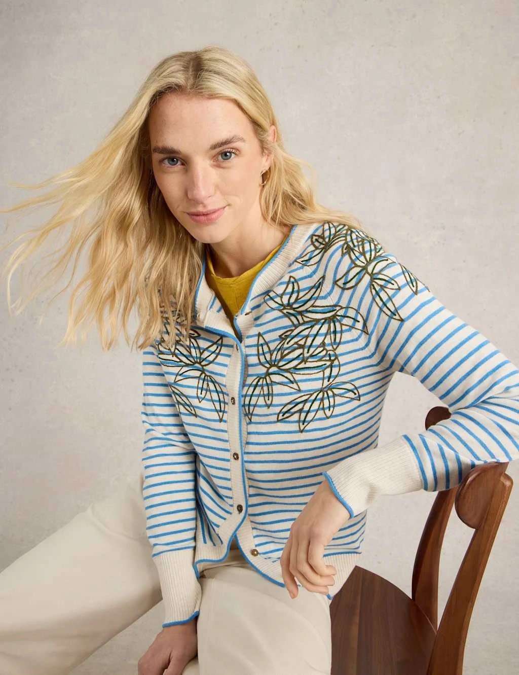 This pure cotton cardigan from White Stuff blends florals and stripes for a unique knit. It’s made in a regular fit with a classic button-through front and crew neckline. Floral embroidery on the shoulders adds eye-catching detail, while ribbed trims ensure a neat finish.