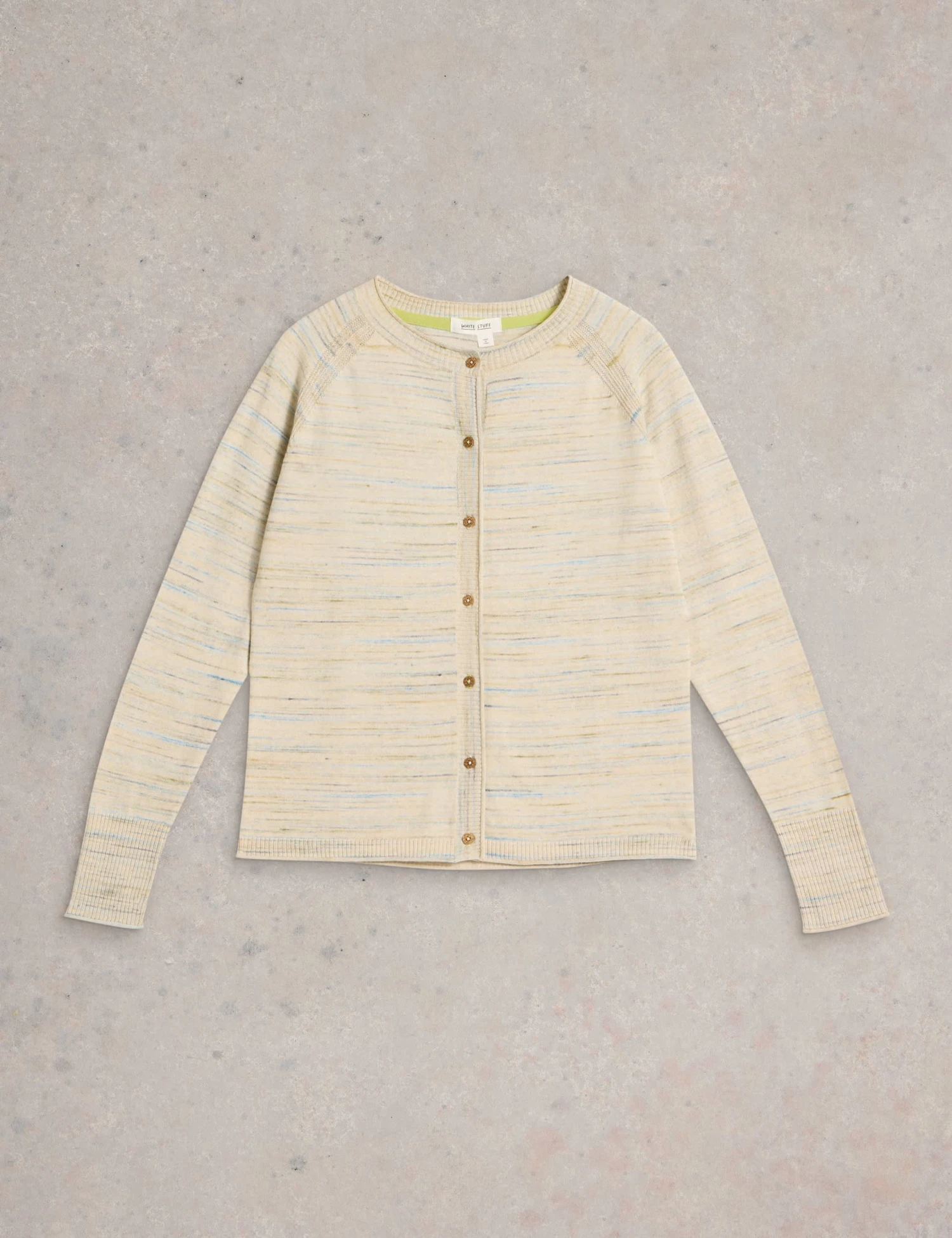 With its space-dyed knit, this White Stuff cardigan is perfect for bringing a touch of texture and colour to your look. It’s made from pure cotton to a flattering regular fit, with a crew neckline and ribbed trims creating a flattering silhouette. The contrast buttons through the front and knitted detailing on the raglan sleeves add extra flair.