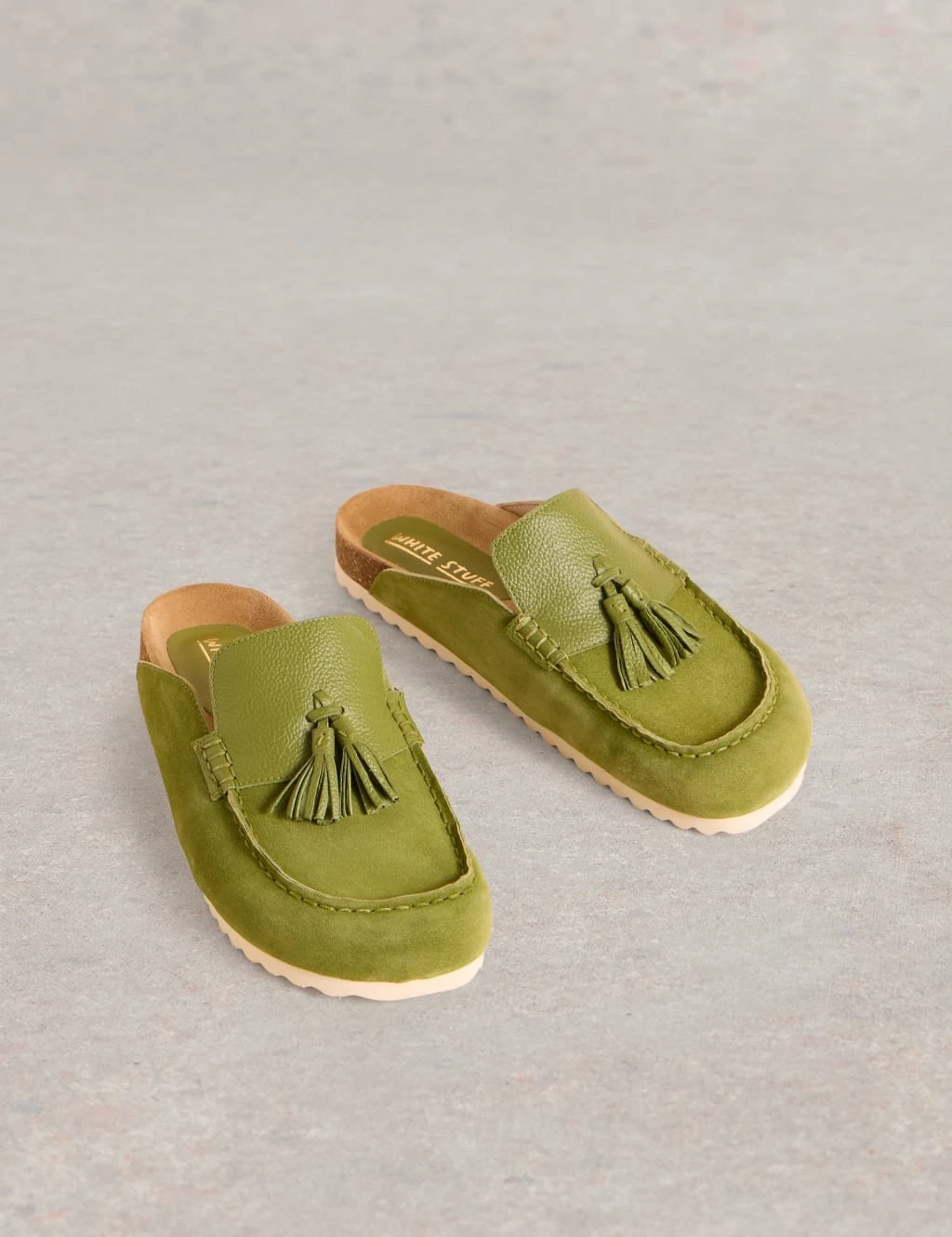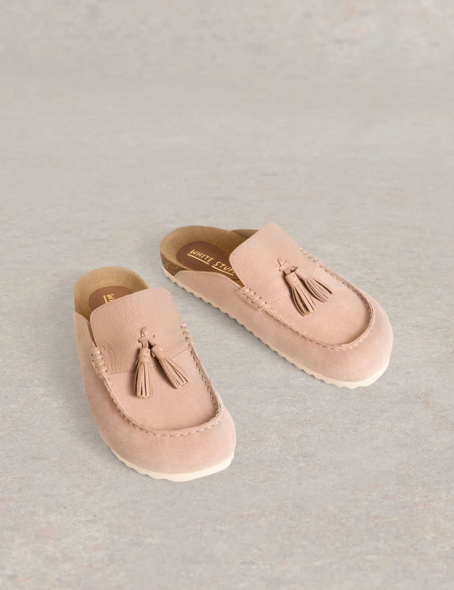 Bring comfort to your weekend with these slip-on footbed mules by White Stuff. The suede upper has moccasin-style stitching and tassels for a timeless look.