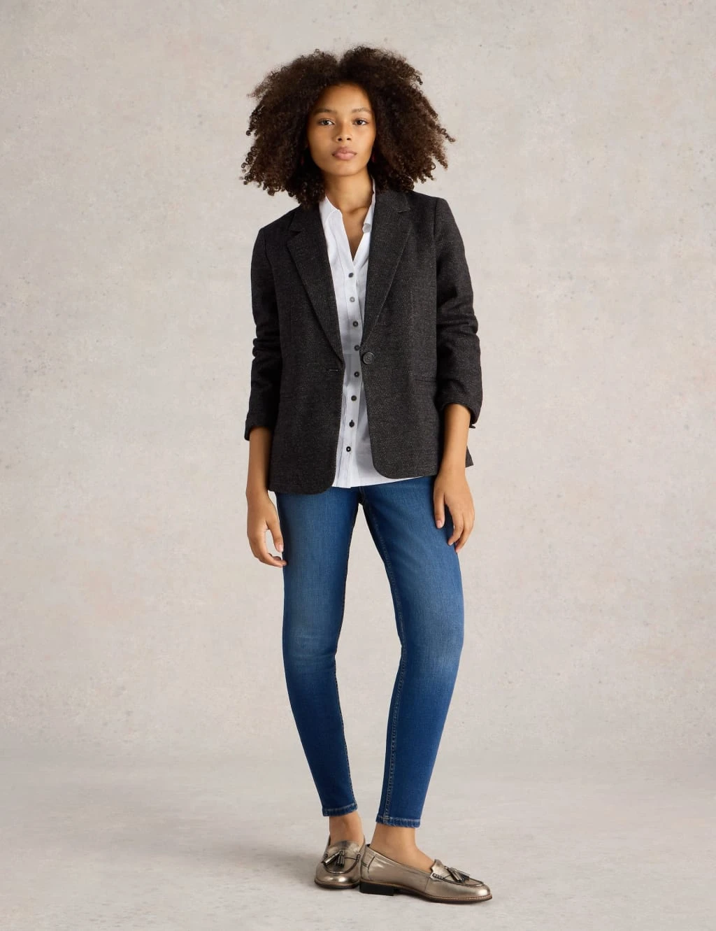 This wool-blend jersey blazer from White Stuff is a versatile choice for your smart-casual wardrobe. It’s designed in an easy regular fit, with a stylish one-button fastening. The notch lapels and welt pockets add timeless touches. This single-breasted piece is lined for comfort and finished with refined four-buttoned cuffs.