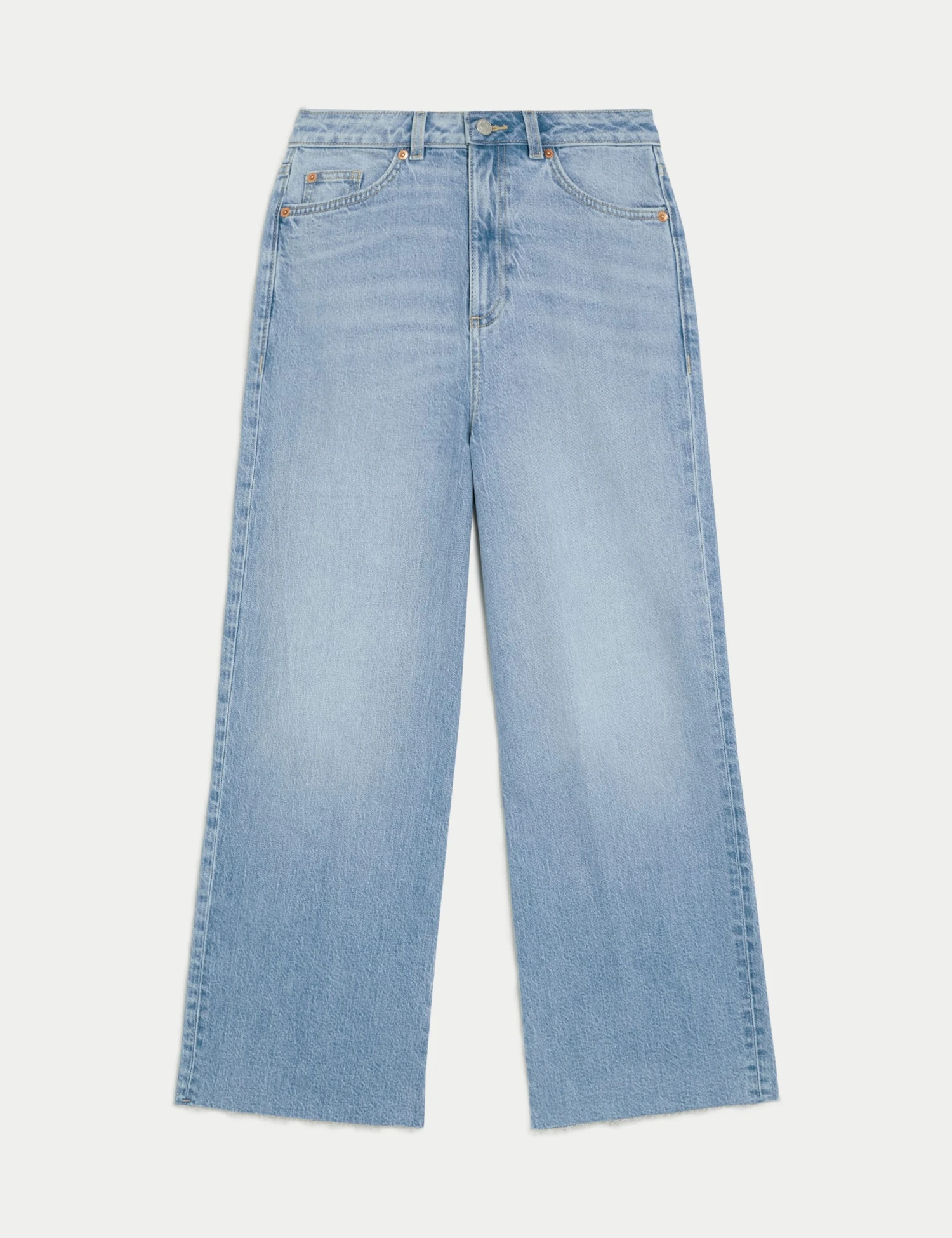 These cropped jeans are a warm-weather staple. They’re designed with a flattering wide leg and a mid-rise waist, complete with a classic button and zip fastening. The soft cotton-rich denim is enhanced with a touch of stretch for added comfort. M&S Collection: easy-to-wear wardrobe staples that combine classic and contemporary styles.