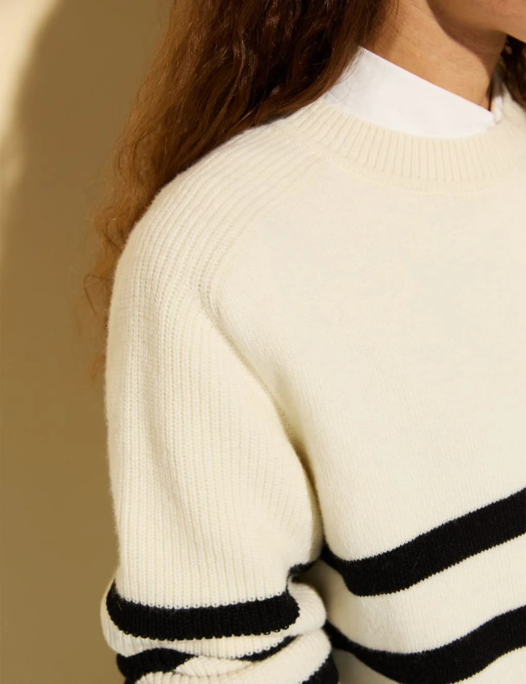 This jumper from Baukjen is rich in merino wool, making it a cosy pick for chilly days. It’s knitted in a laidback relaxed fit for a drapey silhouette with slits at the hem for easy movement. A striped pattern ensures a crisp look.